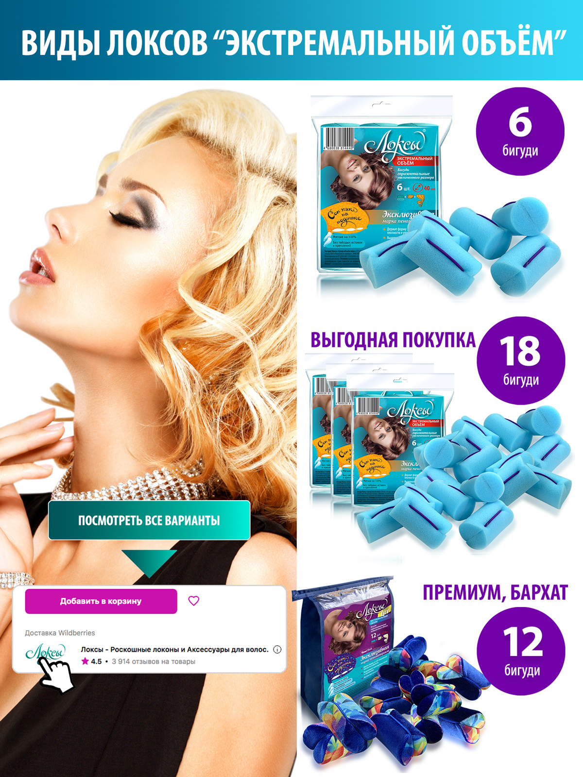 Способ применения:В комплекте есть инструкция по применению.Комплектация:Бигуди Локсы Экстремальный объём - 6 шт.Резинки для волос - 6 шт.Инструкция по использованию - 1 шт.
