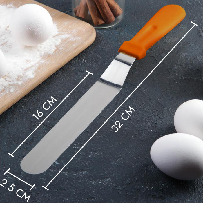 Комплектация:Шпатель кулинарный 1 шт.Описание:Лопатка шпатель для торта кулинарная кондитерская из нержавеющей стали с пластиковой ручкой. Размер 32 см.