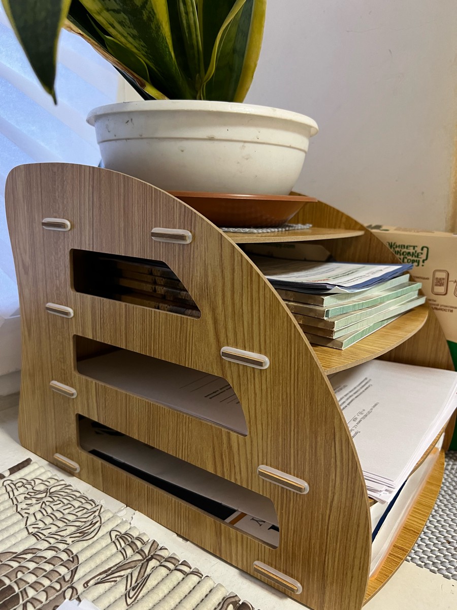 Горизонтальный лоток для бумаг формата А4 из дерева, поможет навести порядок на Вашем столе. Наличие 4 секций поможет Вам максимально удобно и тщательно рассортировать документы, а задняя стенка защитит их от падения на пол. Благодаря корпусу из ДСП лото