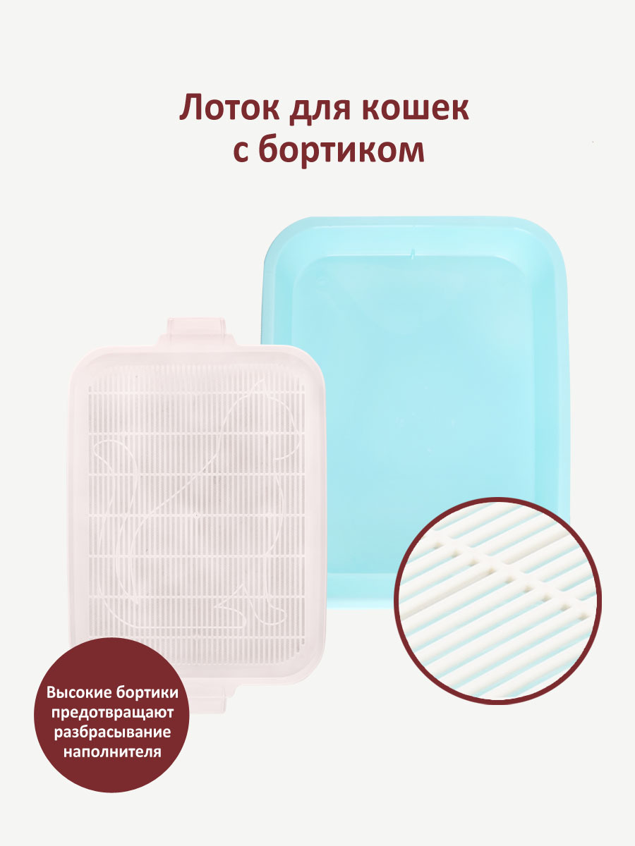 Лоток туалет для кошек с сеткой изготовлен из качественного прочного пластика. Размеры изделия ДхШхВ - 33х25х7,5 см. Материал абсолютно безопасен для здоровья питомца и не имеет посторонних химических запахов. Сетка удобно крепится на лоток, наличие сетки