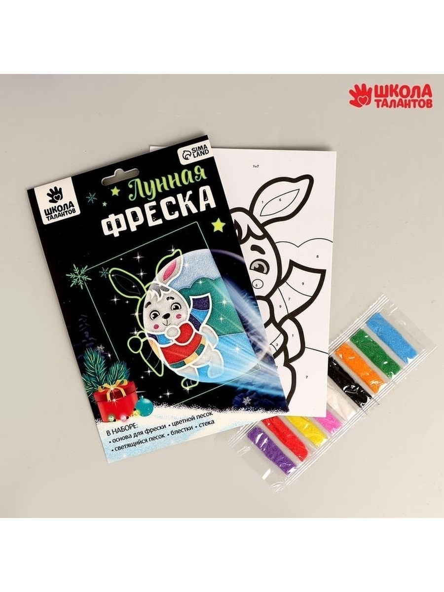 Ваш ребёнок самостоятельно украсит фреску песком и блёстками. Такой шедевр станет отличным подарком для близких людей! Самое удивительное - картина светится в темноте! Подержите её несколько минут у лампы, а затем гасите свет! В темноте юного художника жд