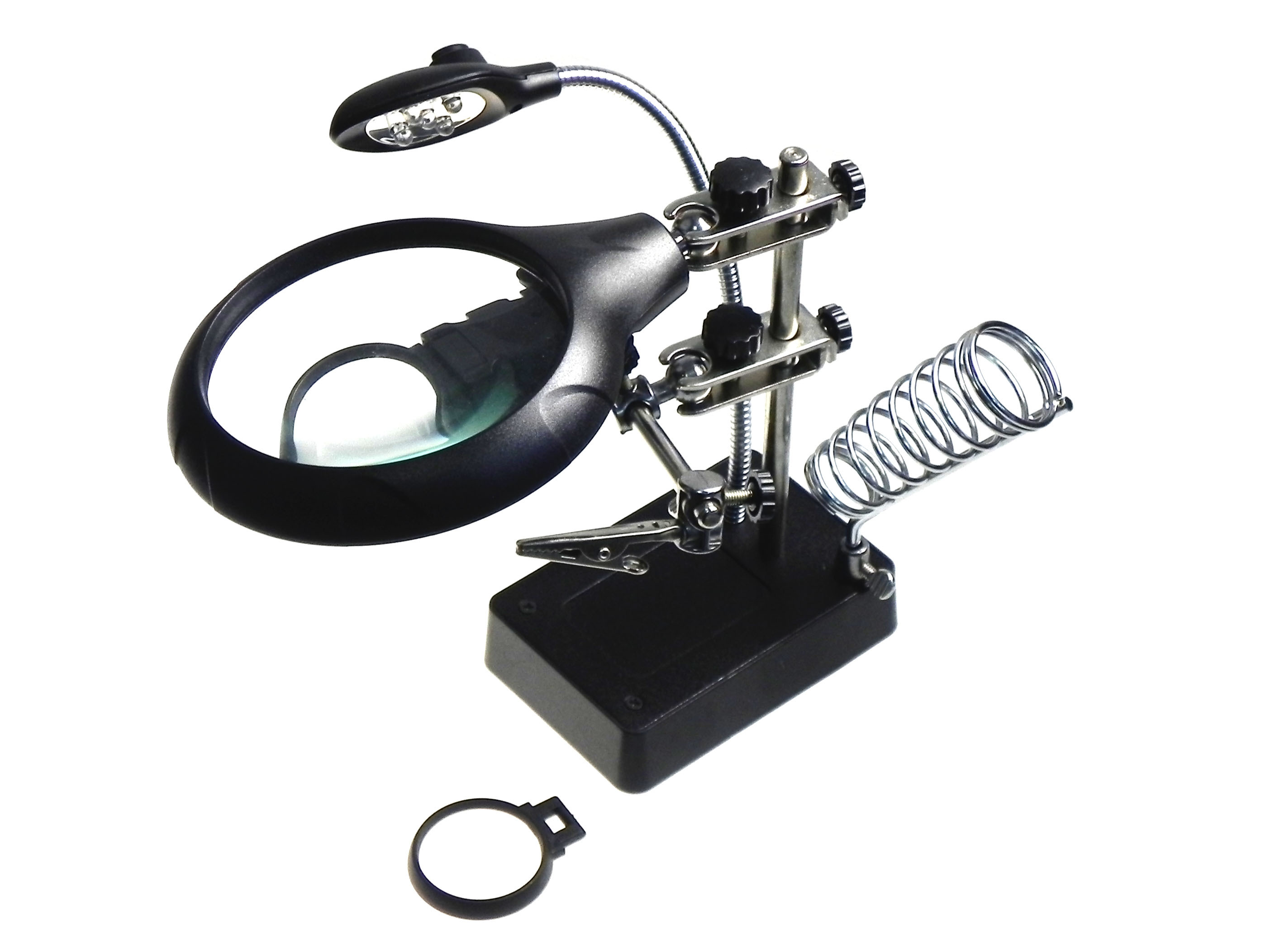 Комплектация:Держатель ("третья рука") и подставка для паяльника; диаметр дополнительных линз: 34 мм, 34 мм, упаковка.Описание:Назначение:для нумизматики/коллекционеров; для рукоделия/текстильная; для чтения; просмотровая, ювелирная/часовая; для косметоло