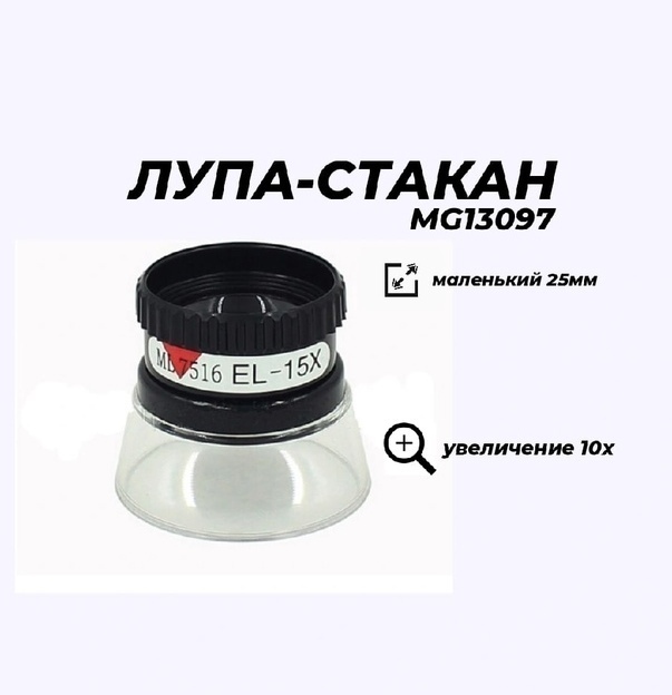 Лупа-стакан мал. 15Х 25mmНазначение:для косметологии;для нумизматики/коллекционеров;для проверки заточки лезвий;для ремонта электроники;для рукоделия/текстильная;для чтения;просмотровая;ювелирная/часовая.Комплектация:Лупа-стакан, упаковка.