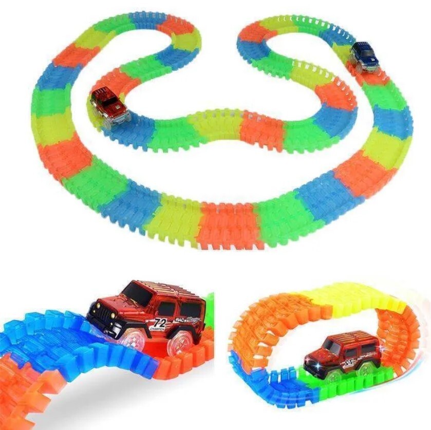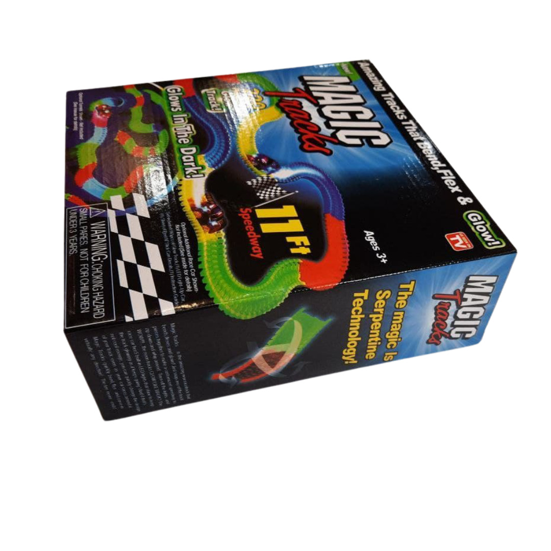 Волшебные треки - это потрясающая гоночная трасса, которая изгибается, извивается и светится. Просто соедините любые из деталей вместе, чтобы создать свой личный скоростной трек, который можно будет застегнуть и перекрутить. Выключите свет, и неоновые тре