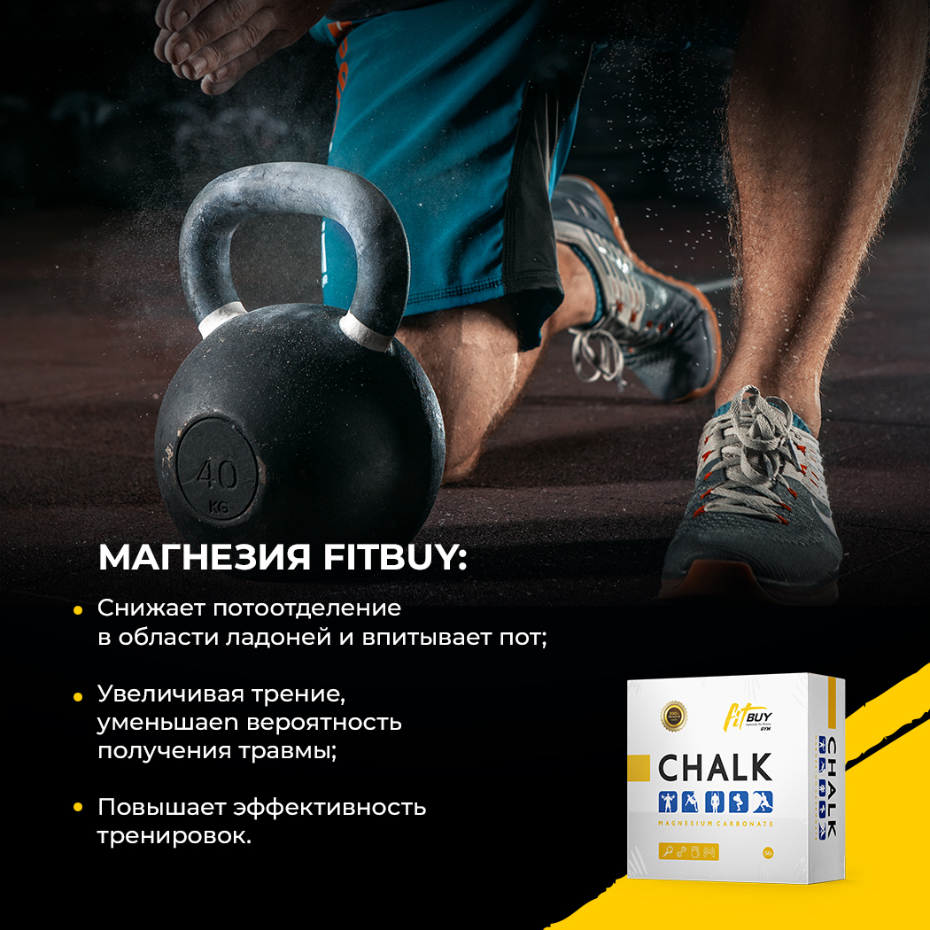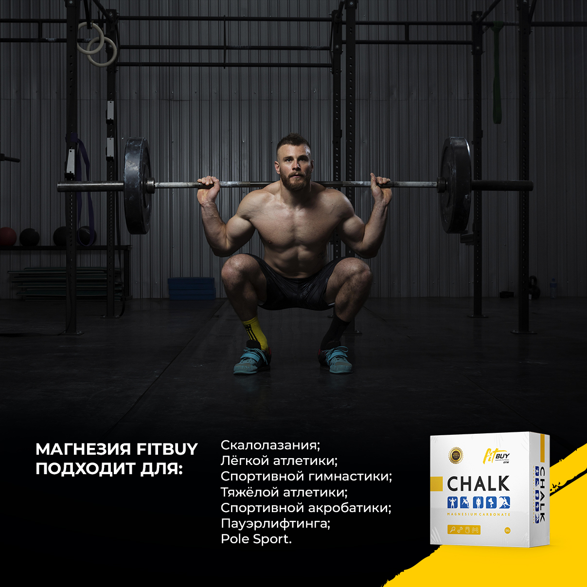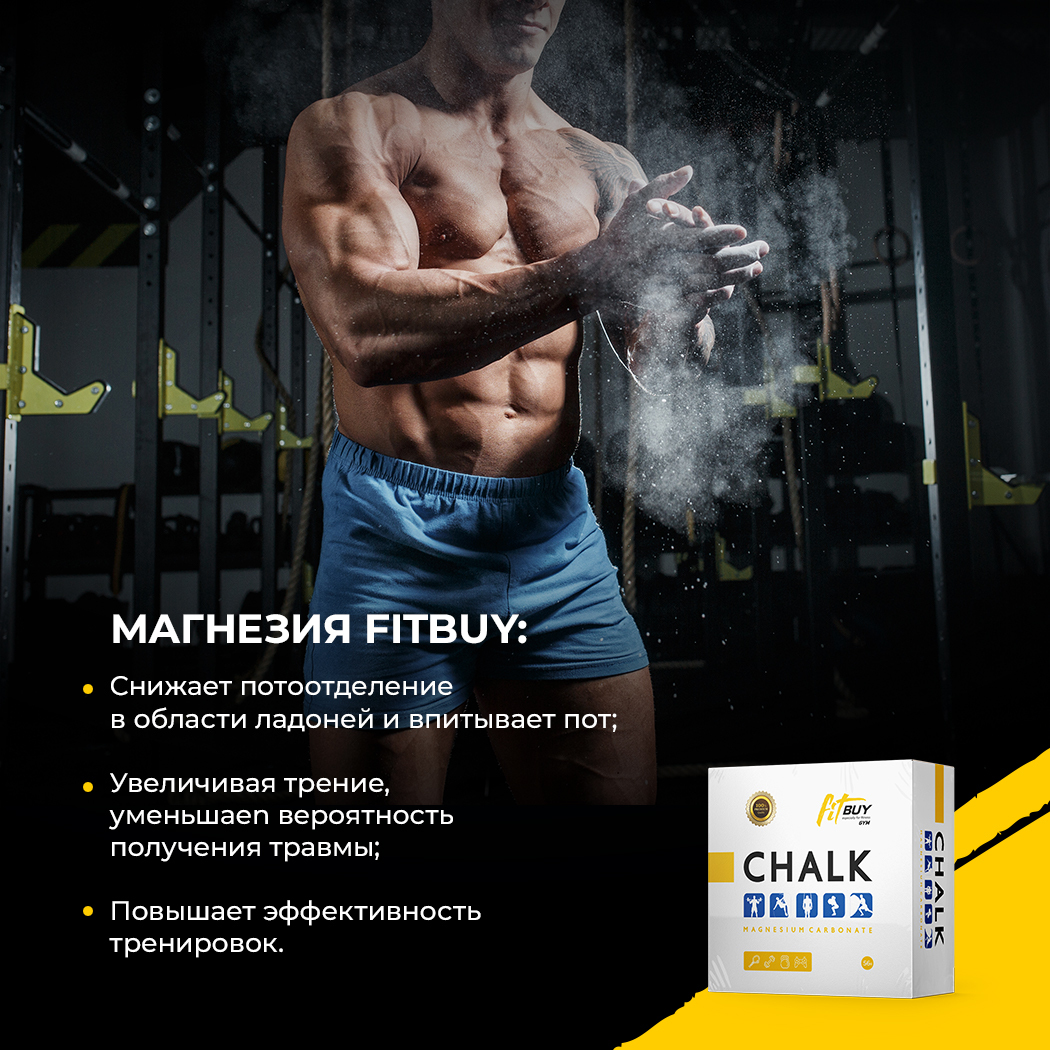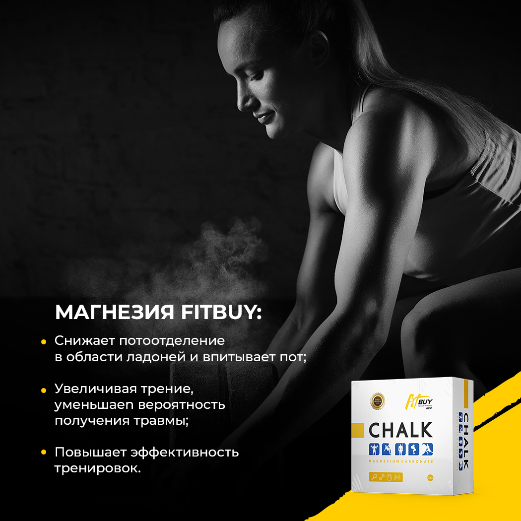 Магнезия Fitbuy 56г это порошок белого цвета, изготовлен в виде прессованных кубиков. Основным ингредиентом его является соль магния, которую добывают из морской воды и полезных ископаемых Магнезия Fitbuy хорошо **впитывает влагу и кожный жир**, подсушива