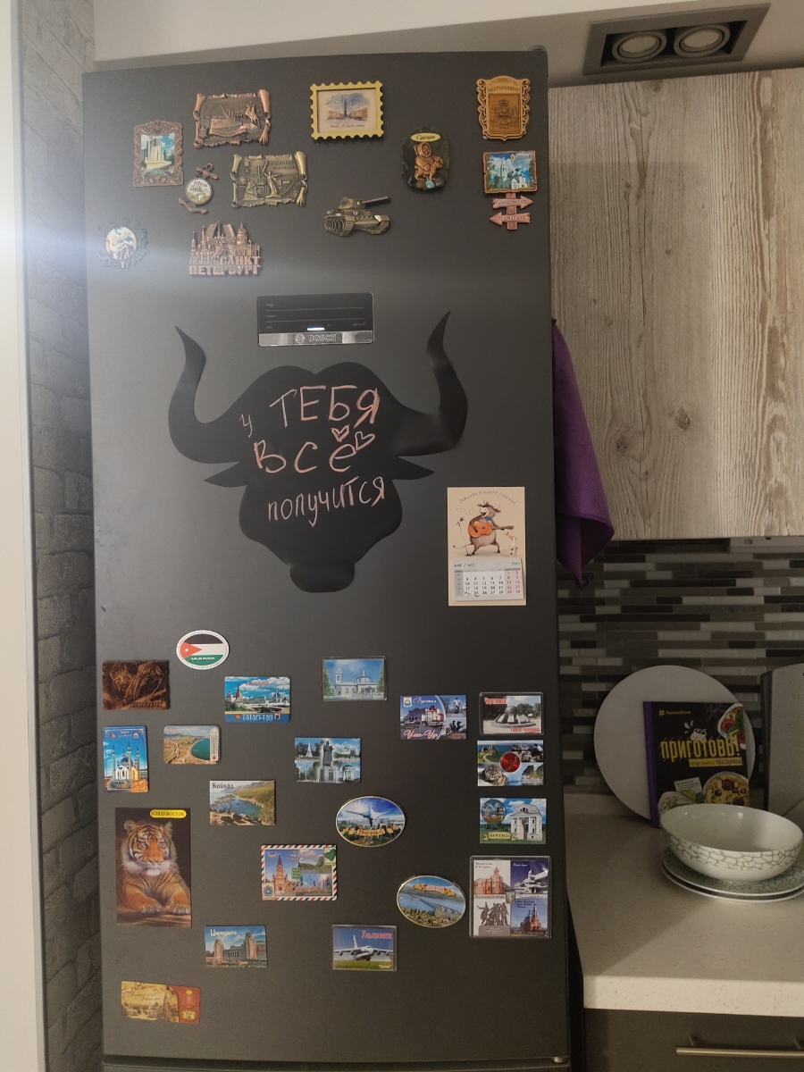 Магнитная-меловая доска на холодильник предназначена для записей мелками. Записи с поверхности доски стираются легко и без остатка влажной тряпкой или губкой. Доска просто примагничивается на ваш холодильник. Изготовлена из магнитного винила толщиной 0.7