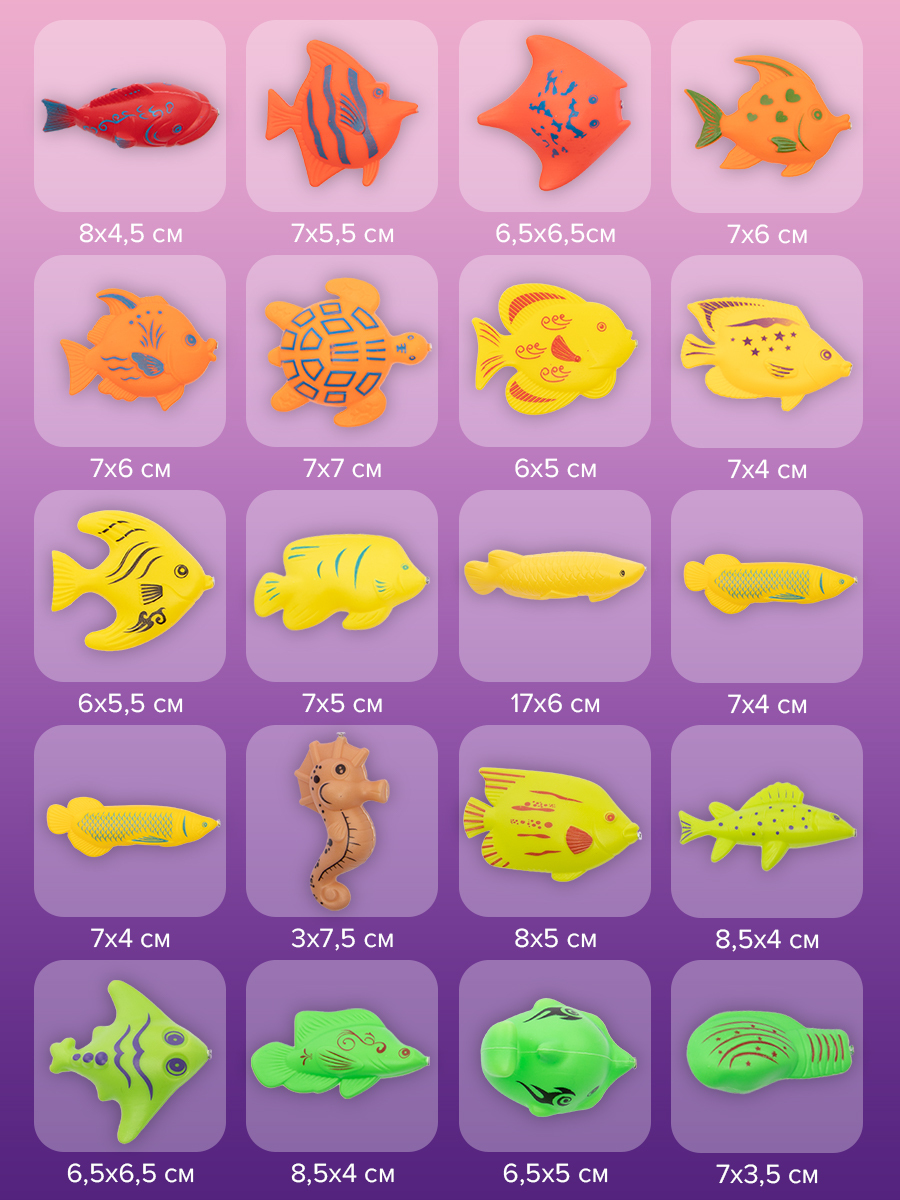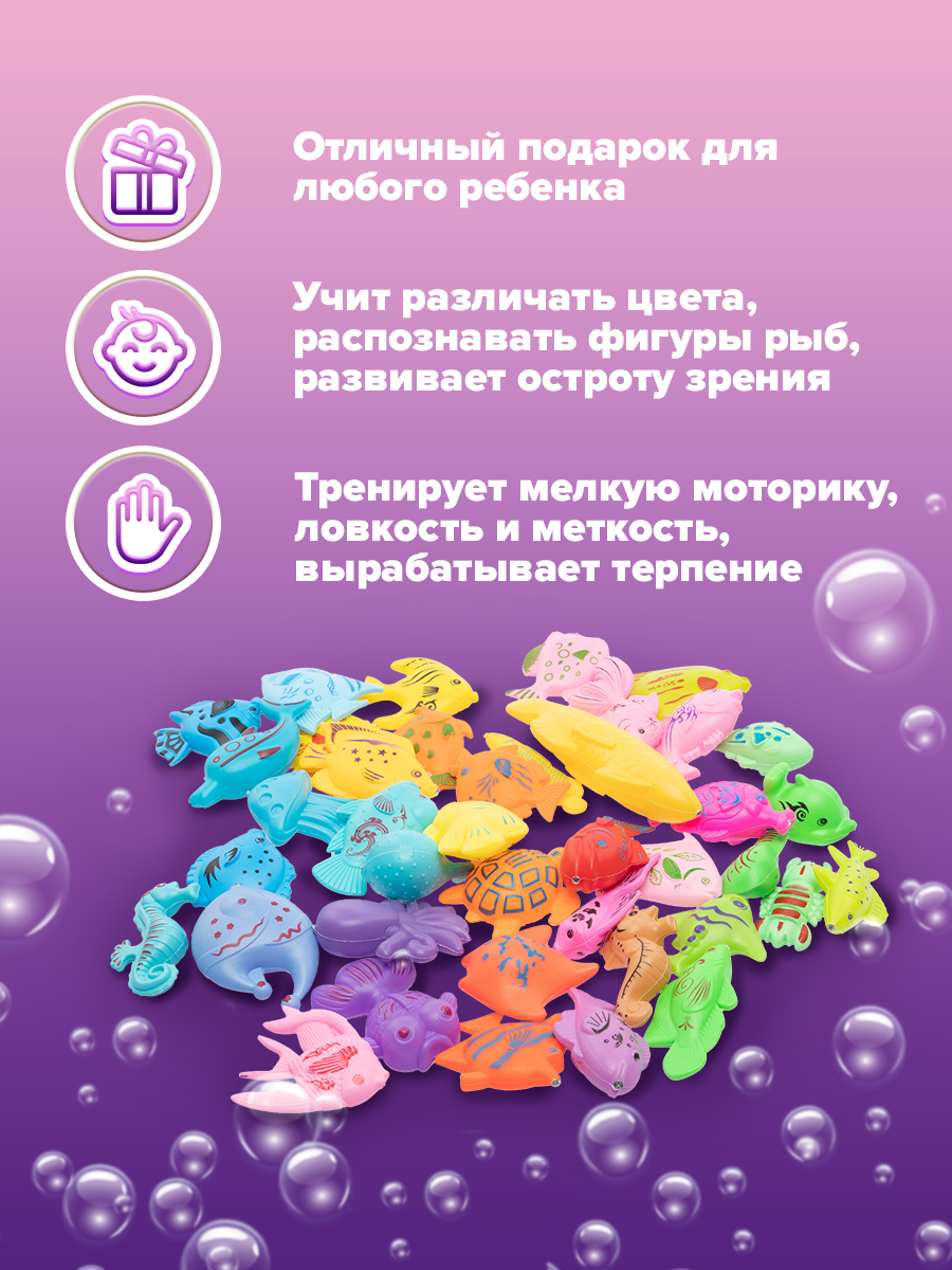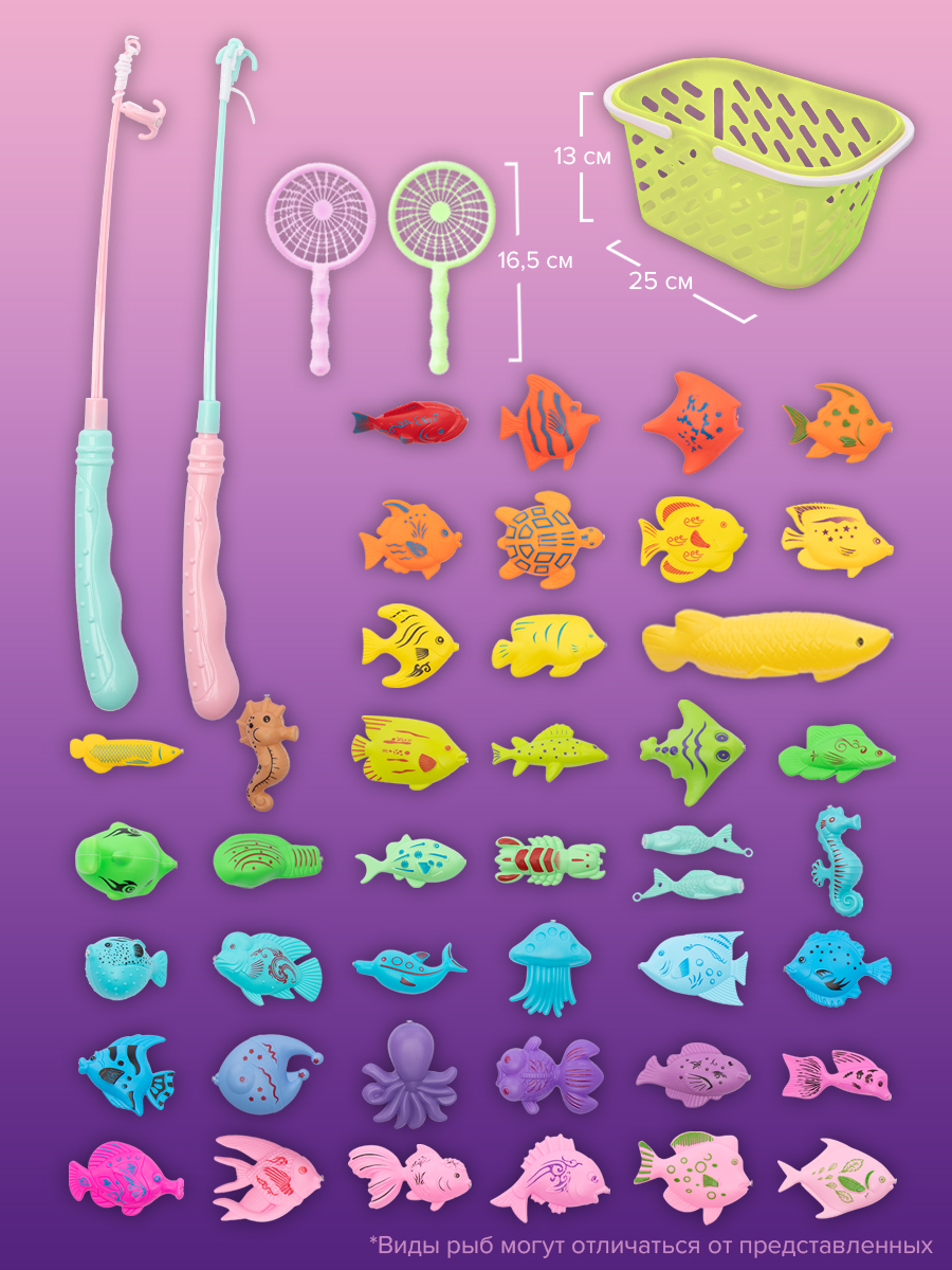 Комплектация:корзинка; удочка 2шт; сачок 2шт; рыбки 42штОписание:Детская магнитная рыбалка отличная развивающая игра монтессори для мальчиков и девочек. Игрушка тренирует ловкость и меткость, концентрацию внимания, усидчивость, терпение и остроту зрения,
