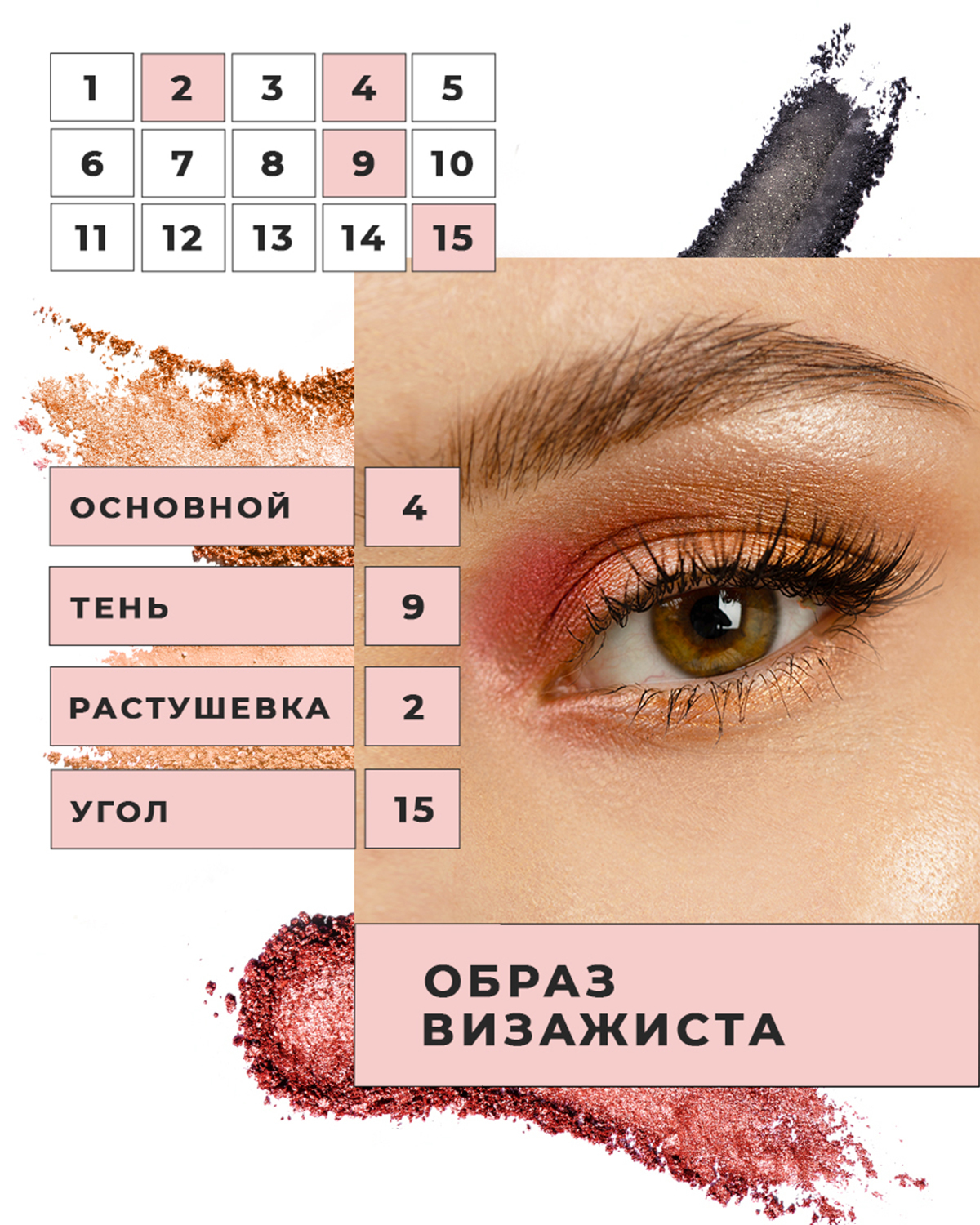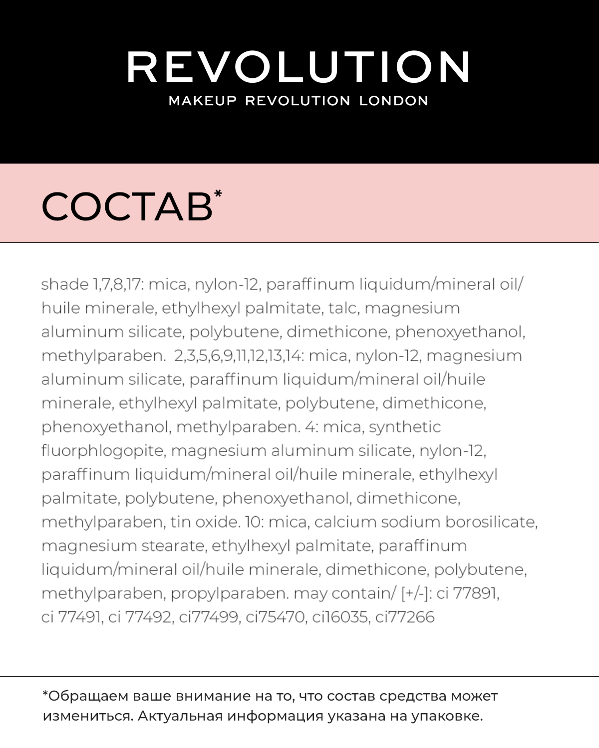 Состав:shades 1, 5, 9, 11, 15: talc, mica, magnesium stearate, ethylhexyl palmitate, paraffinum liquidum/mineral oil/huile minerale, dimethicone, polybutene, methylparaben, propylparaben. shades 2, 12, 14: mica, talc, magnesium stearate, paraffinum liquid