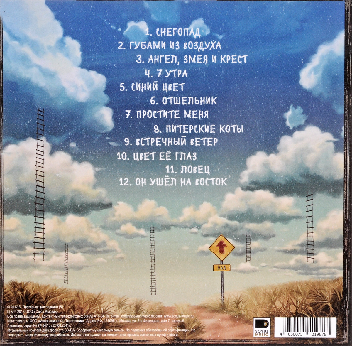 Формат и содержание:• CD, softpack• 12 треков,• 16-страничный буклетТреклист:01. Снегопад – первый обнародованный трек с нового альбома, радио-сингл («Авторадио», «Наше Радио»)02. Губами из воздуха (feat. Эрнесто Заткнитесь)03. Ангел, змея и крест04. 7 ут