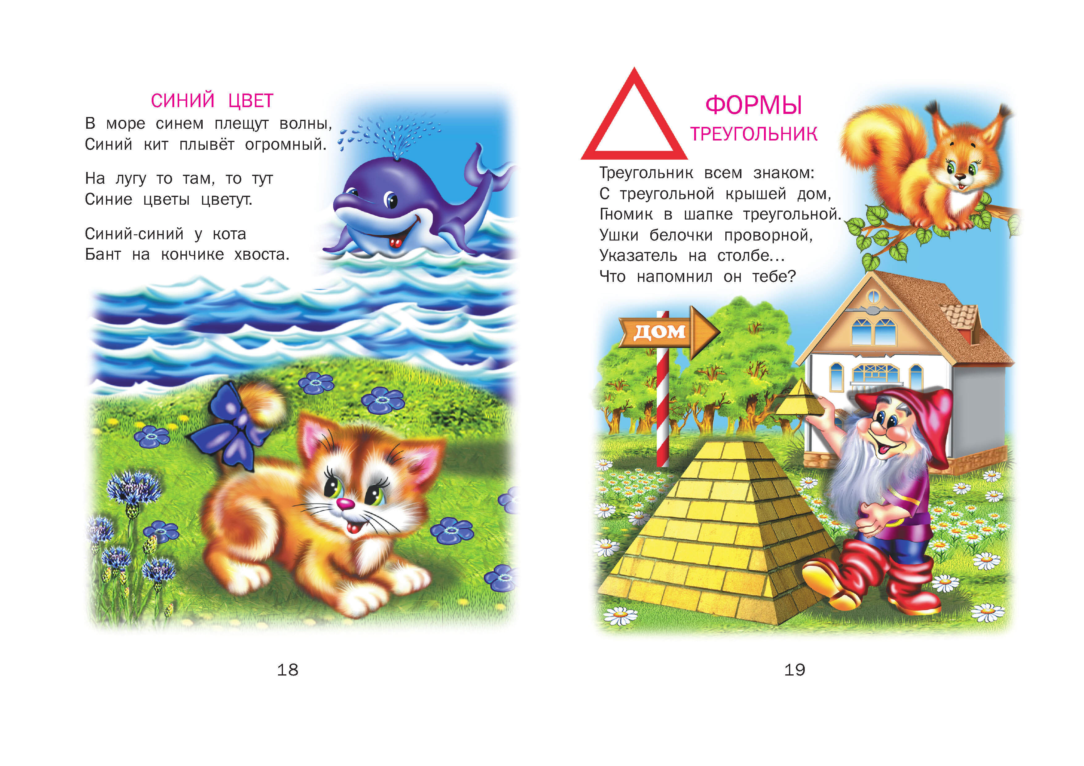 Какого цвета тыква? На что похож треугольник? Кто большой, а кто маленький? Что нужно говорить при встрече? Учиться — интересно и весело! Благодаря ярким картинкам и забавным стихам малыш легко освоит счет, познакомится со свойствами предметов, запомнит в