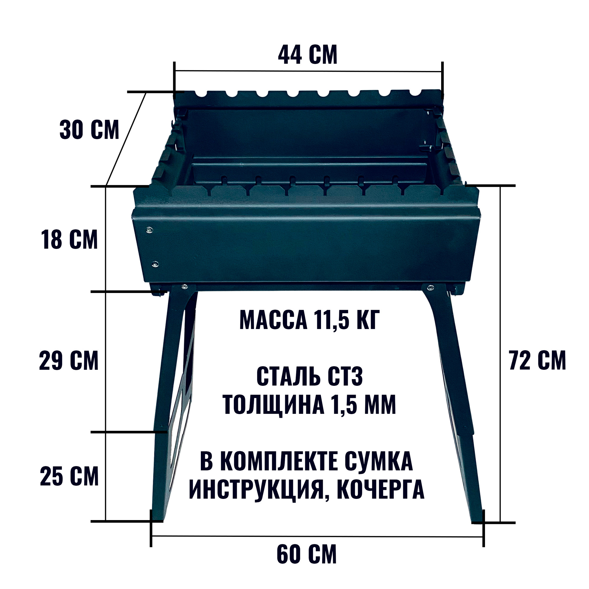 Комплектация:Мангал, влагозащитная сумка, кованная кочерга, инструкция, фирменная упаковка.Описание:Представляем универсальный складной мангал KOLUNDROV «Дипломат» из стали 1,5 мм на 6/8 шампуров для дачи, похода, туризма и отдыха на природе.В одном изде