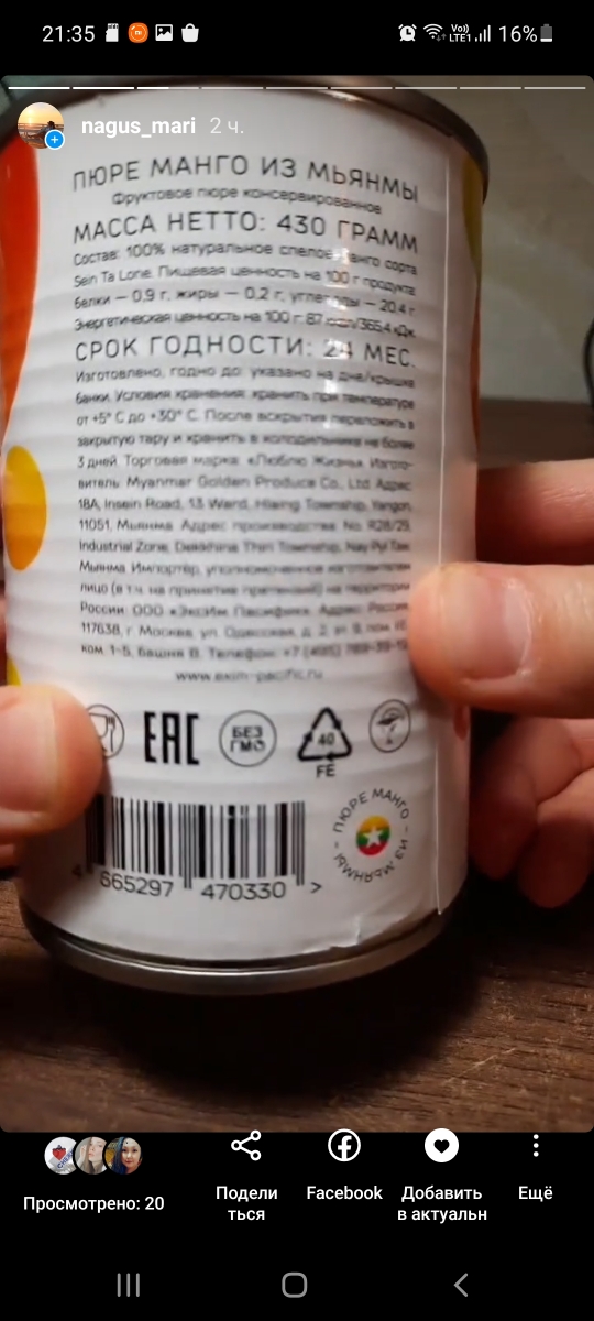 Условия хранения:Хранить в сухом прохладном месте. Избегать воздействия прямых солнечных лучей.Состав:100% Манго сорта Sain Ta LoneОписание:Натуральное пюре из манго без добавок! Сделано из очень сладкого манго, произрастающего в Мьянме. Пюре можно добавл