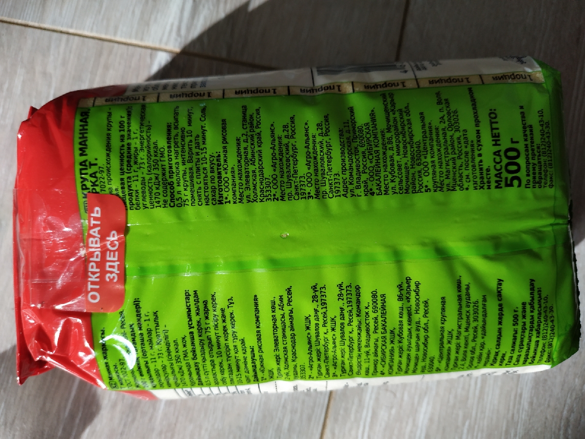 Условия хранения:Хранить в сухом месте при температуре не выше 25 С и отосительной влажности воздуха не более 75%Состав:Манная крупа из твердых сортов пшеницы. ГОСТ 7022-97Описание:Манная крупа, произведённая из твёрдых сортов пшеницы, обладает насыщенным