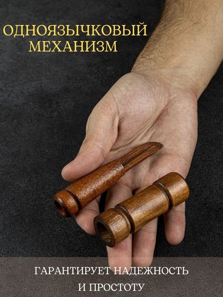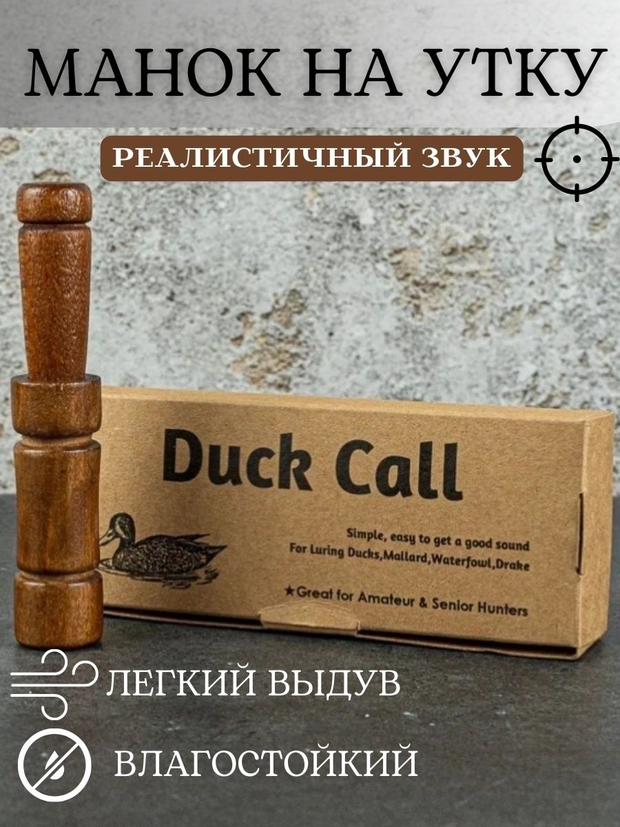 Манок для охоты имеет высокую популярность у российских охотников. Превосходно имитирует утиное кряканье и имеет функцию перенастройки к более высоким тонам благодаря кольцу. Обладает маленьким весом и комфортен в использовании. Выдает широкий бархатистый