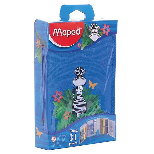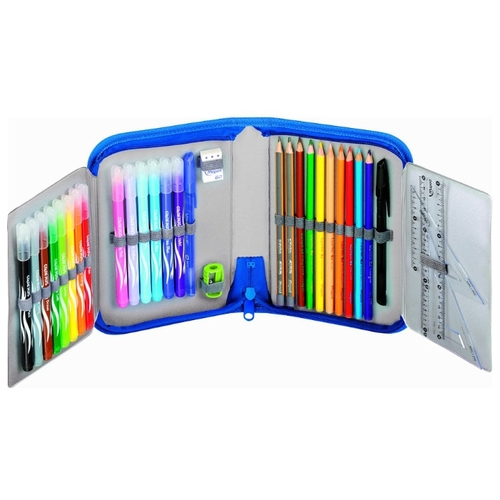 Дополнительная информация8 цветных карандашей Color'Peps; 2 чернографитных карандаша Black'Peps (HB); 14 фломастеров Color’Peps с длительным сроком службы; 1 Boogy точилка; 1 чертежный набор (15 см линейка, 60° и 45° угольники); 1 ластик Domino 60; 2 шариковые ручки Ice