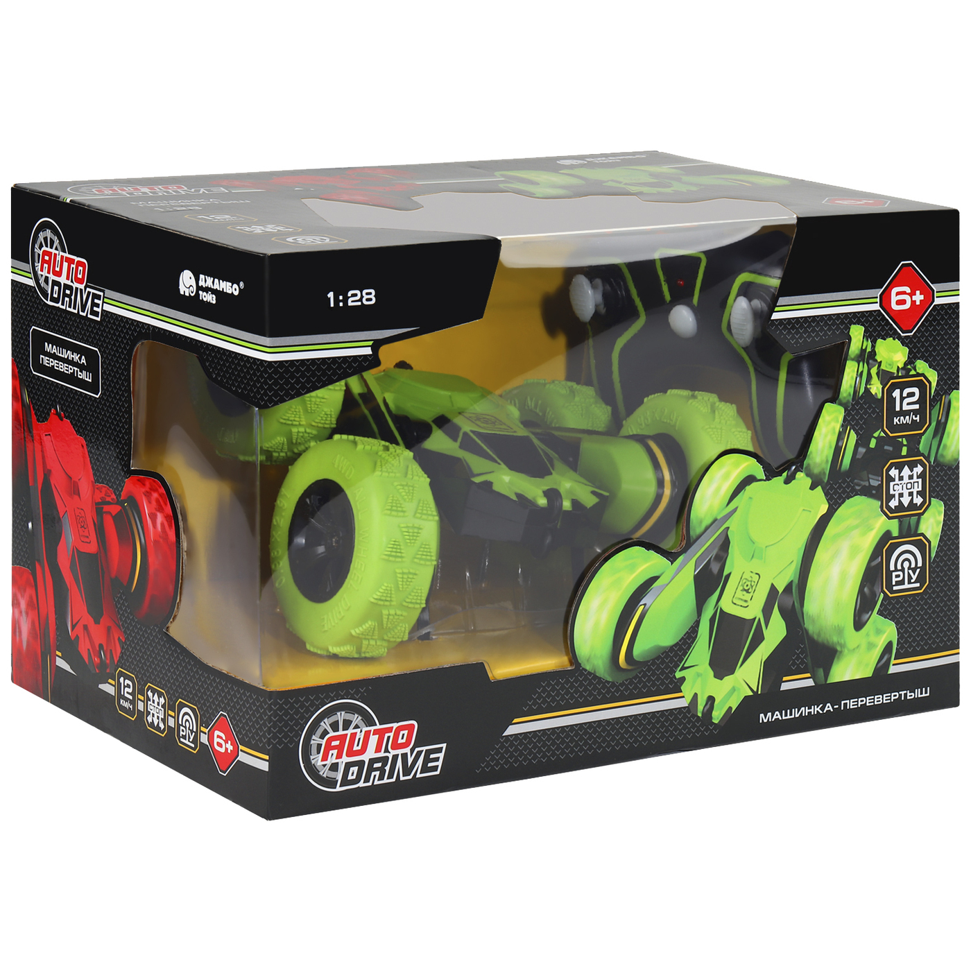 Комплектация:Пульт д/у, зарядное устройство, инструкция, акбОписание:Машинка-перевертыш радиоуправляемая AUTODRIVE зеленого цвета. Изготовлена из прочных материалов. Выполняет невероятные трюки в любых условиях: твердое покрытие, грунт.Управление с помощь