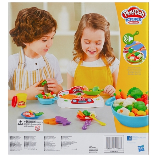Подробная комплектацияэлектронная плита, 4 тумбы, 2 сковородки, щипцы, шпатель, нож, вилка, 5 стандартных баночек пластилина (белый, жёлтый, зелёный, оранжевый, красный)