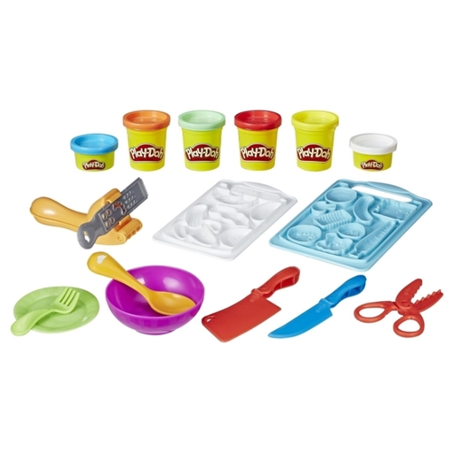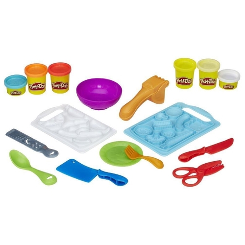 Подробная комплектация2 разделочные доски, ножницы, ножи, аксессуары, 4 стандартных баночки и 2 маленькие баночки пластилина