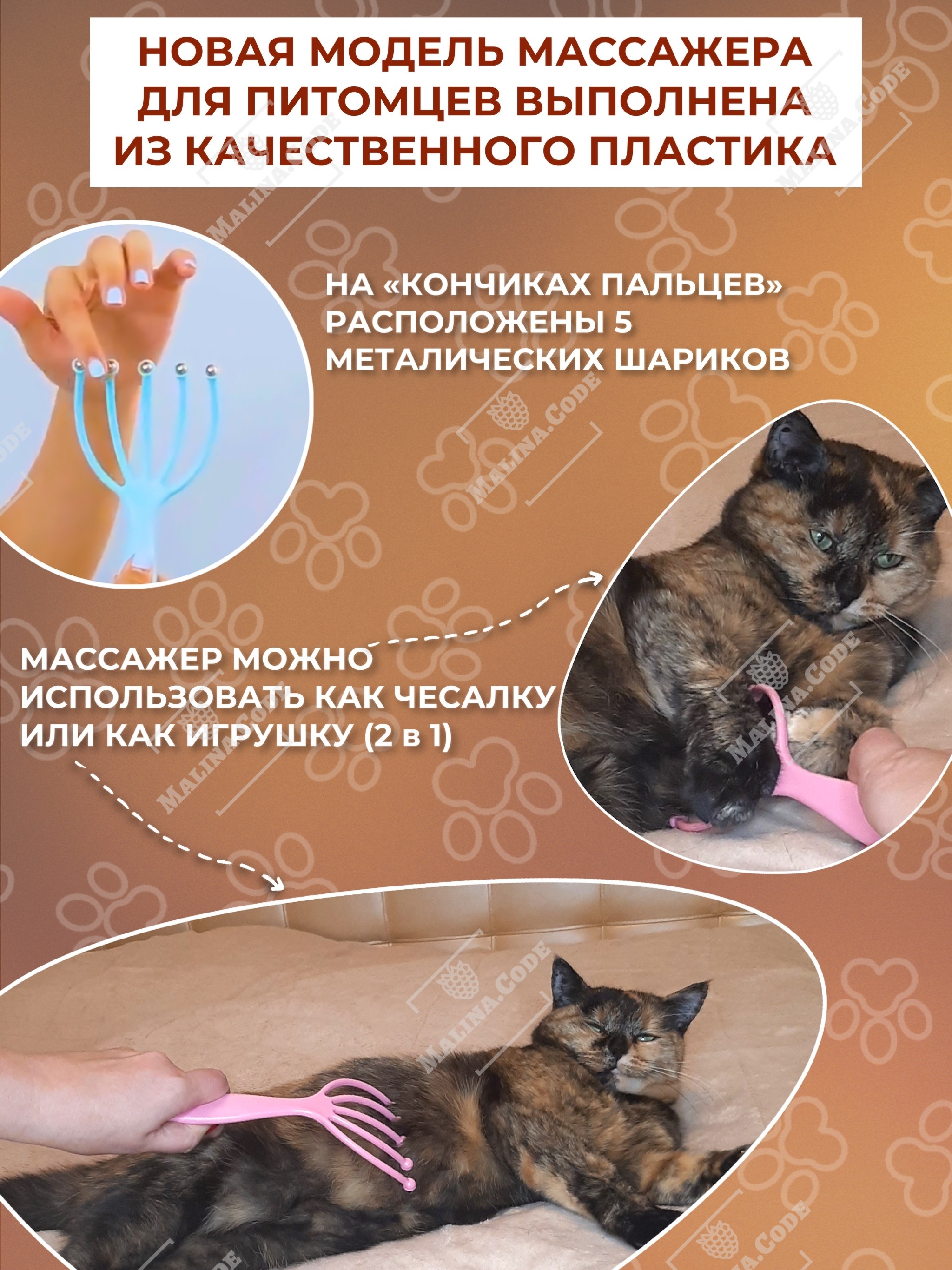 Массажер - чесалка для кошек и собак с 5 роликами помогает расслабить мышцы питомца и получить позитивные эмоции. Благодаря эргономичным массажным шарикам массажер антистресс улучшает микроциркуляцию крови и доставляет истинное удовольствие вашему питомцу