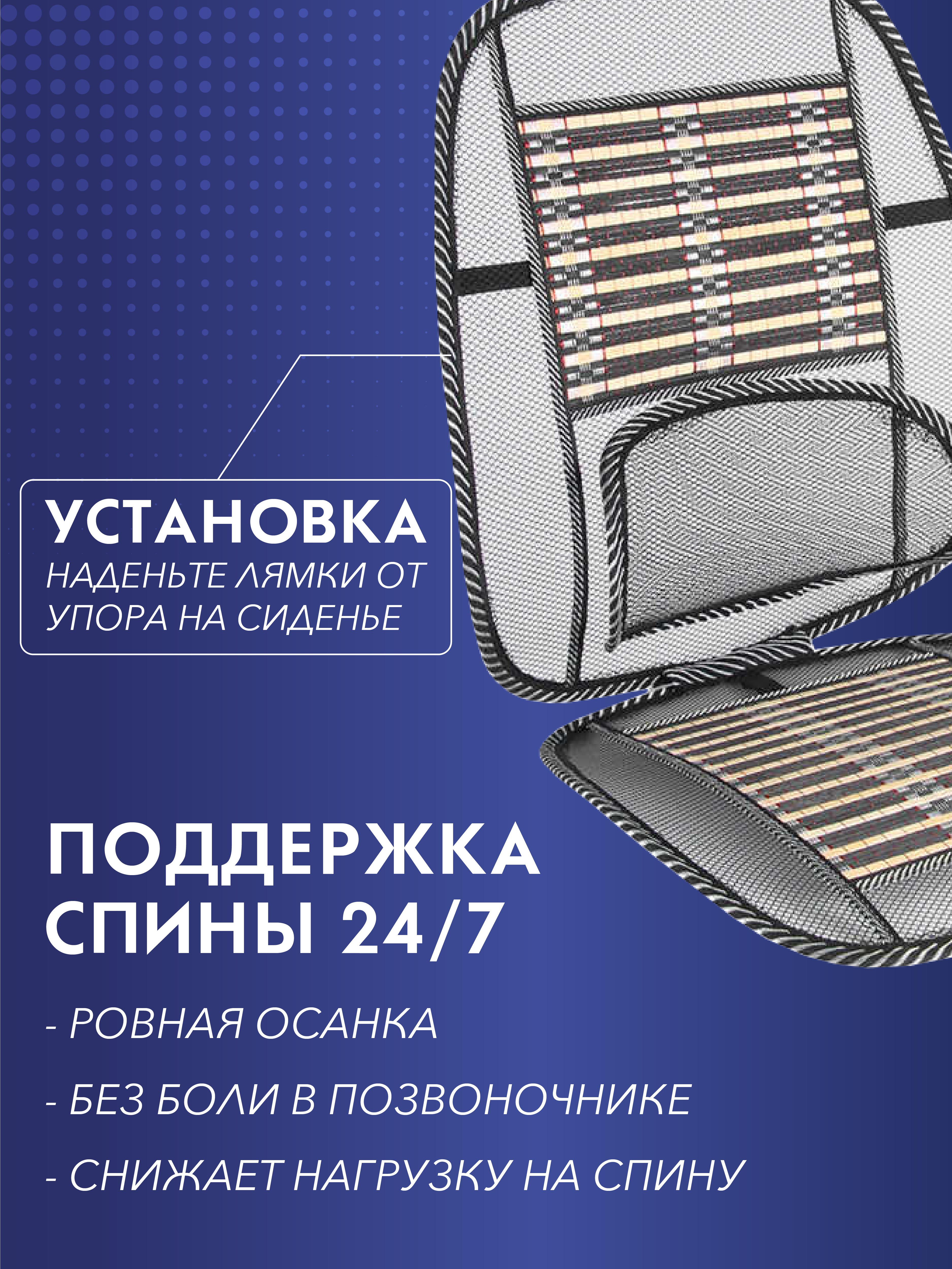 Материал обивки:НейлонКомплектация:Массажная накидка на кресло - 1шт.Материал каркаса:МеталлОписание:Упор поясничный – поможет исправить осанку, устранить боль в спине и избавит от ряда сопутствующих патологий.✅ Упор для поясницы, который поможет держать