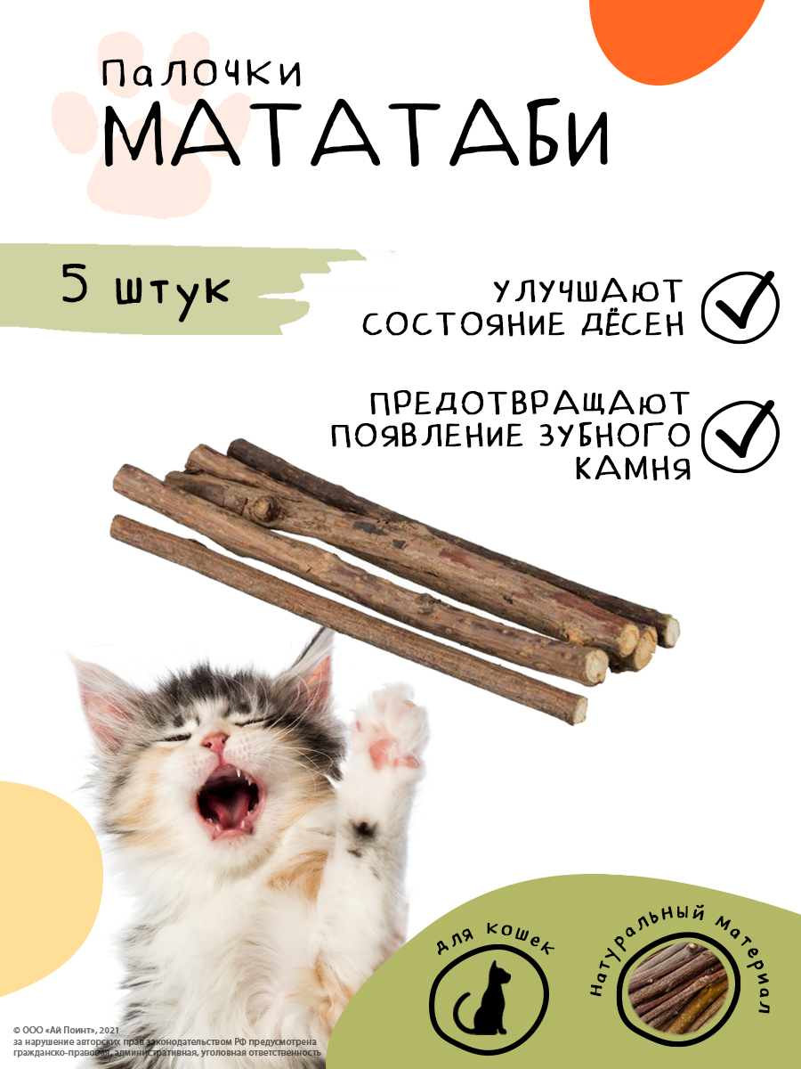 Палочки мататаби с кошачьей мятой из японского дерева мататаби для кошек благотворно влияют на кошку, снимают стресс, расслабляют и вызывают желание поиграть и понежиться не вызывая при этом привыкания. Палочки способствуют очищению полости рта и зубов. Э