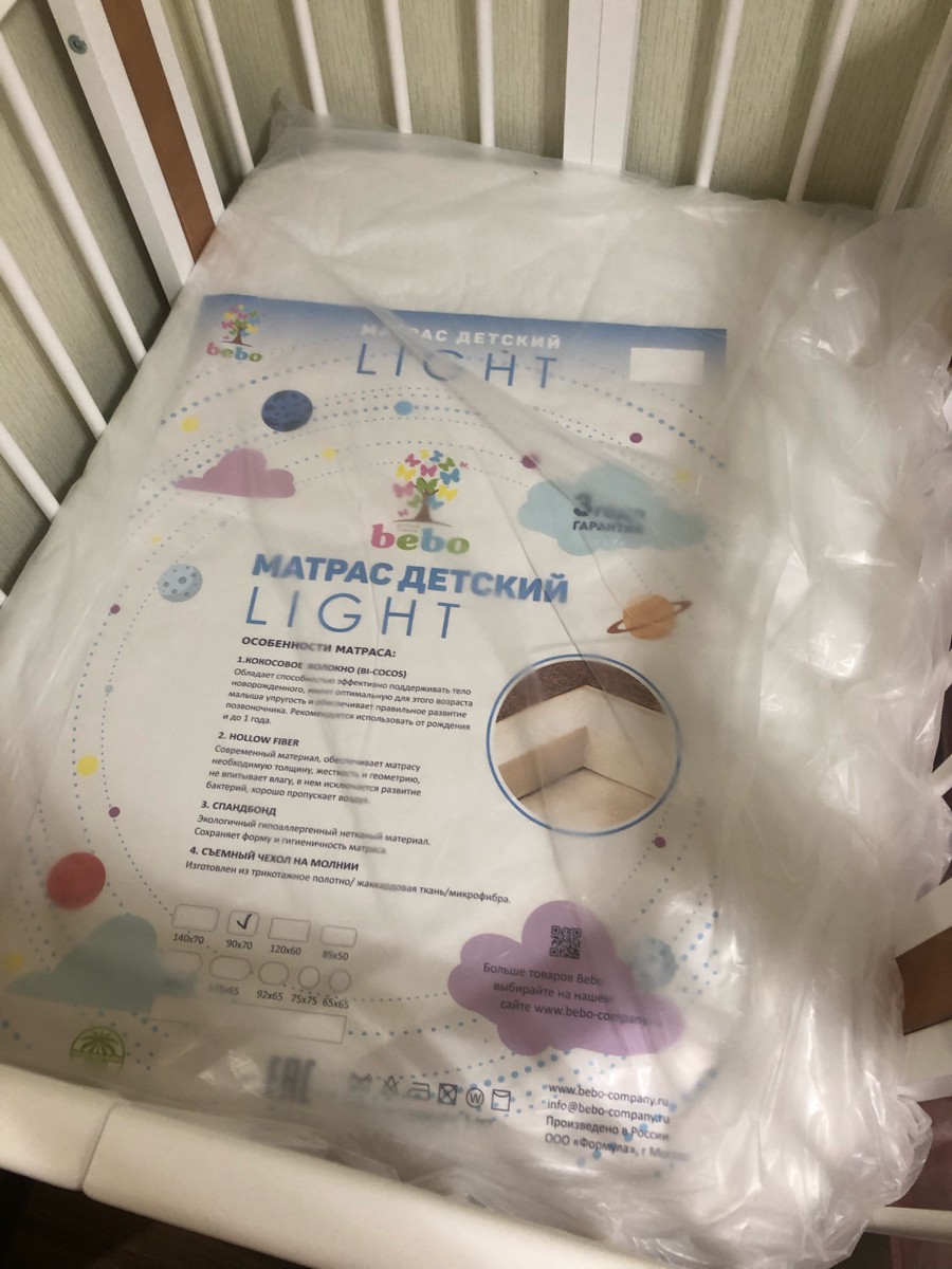 Модель беспружинного ортопедического матраса для новорожденного Bebo Light 140х60 в современные кроватки для новорожденных Bebo Malibu и Happy Baby Mommy, посли установки в них расширения до 7 лет, является оптимальным с точки зрения соотношения цена