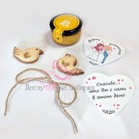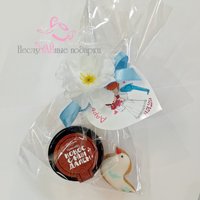 Прекрасный мини-подарочек гостям на свадьбе с милой голубкой-пряником. Выполнен в "натуральных" тонах, с джутовой лентой.