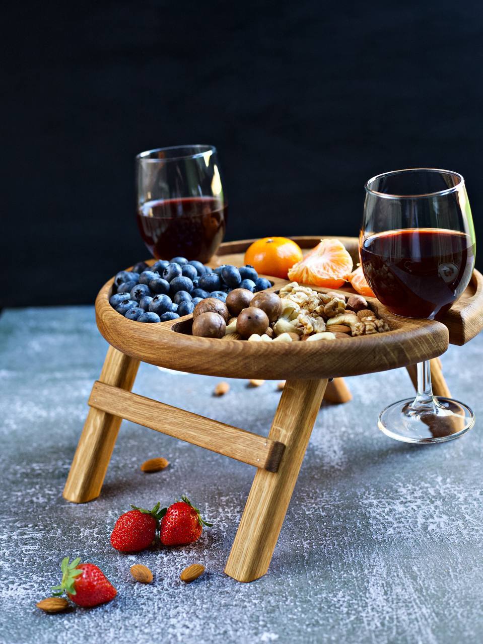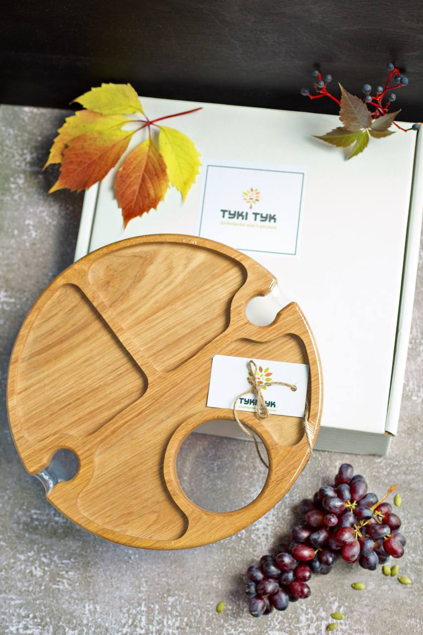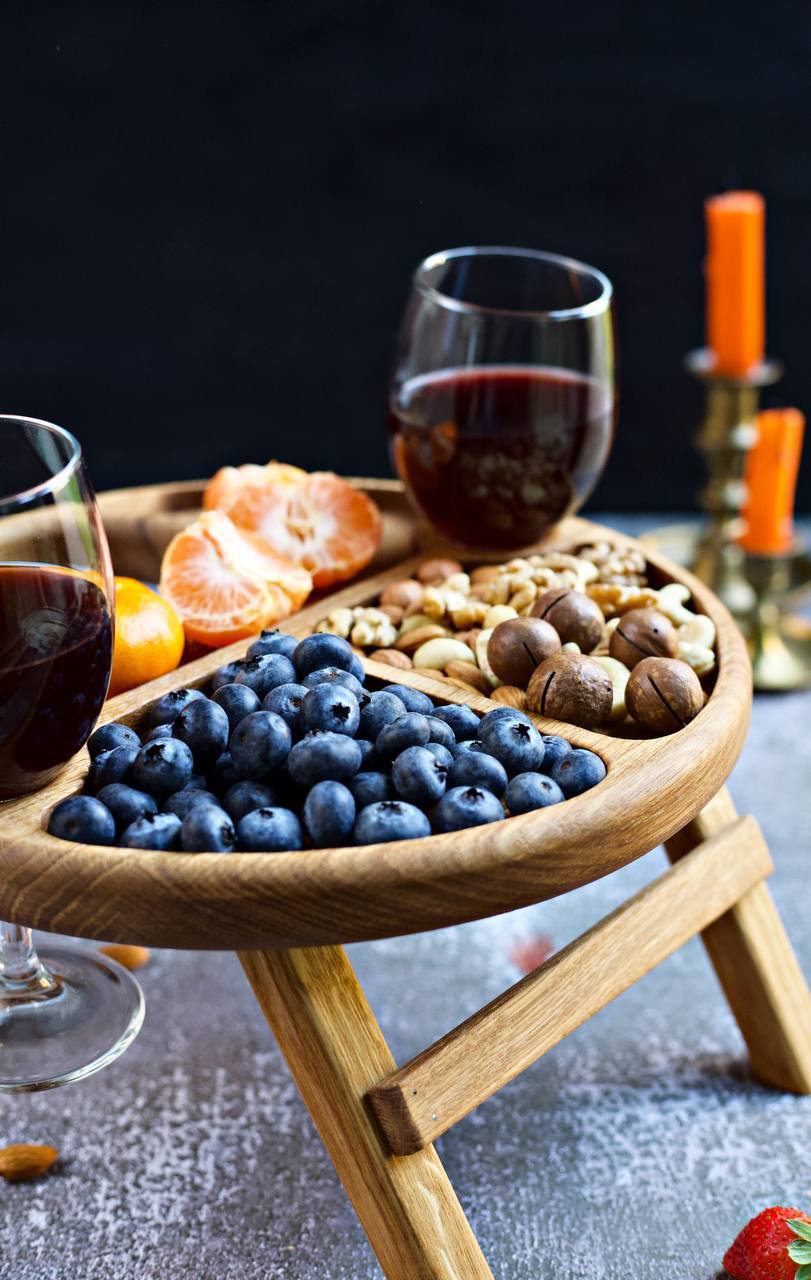 Габариты (ДхШхВ, см)диаметр 30 см/подставка под 2 бокала для вина/винный столик/Доска для подачи закусок/Менажница деревянная/Поднос деревянный/Сырная доска/Блюдо сервировочное/Винный столик/Доска сервировочная/Сервировка стола/Столик на ножках/