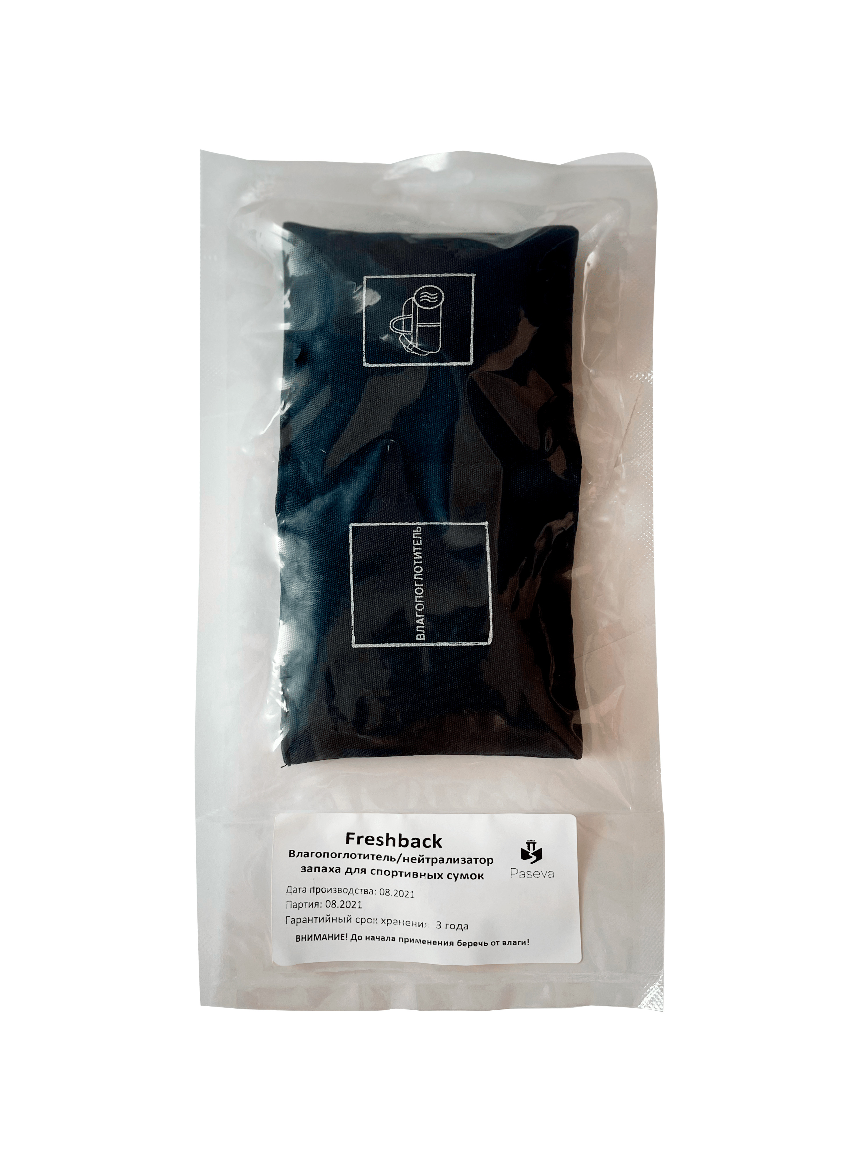 Freshback – это универсальный влагопоглотитель и нейтрализатор запаха в одной упаковке. Область применения: спортивные сумки, шкафчики для хранения сменной спортивной формы/одежды/обуви.Состав Freshback: 50% силикагель, 50% угольный сорбент.Предназначение