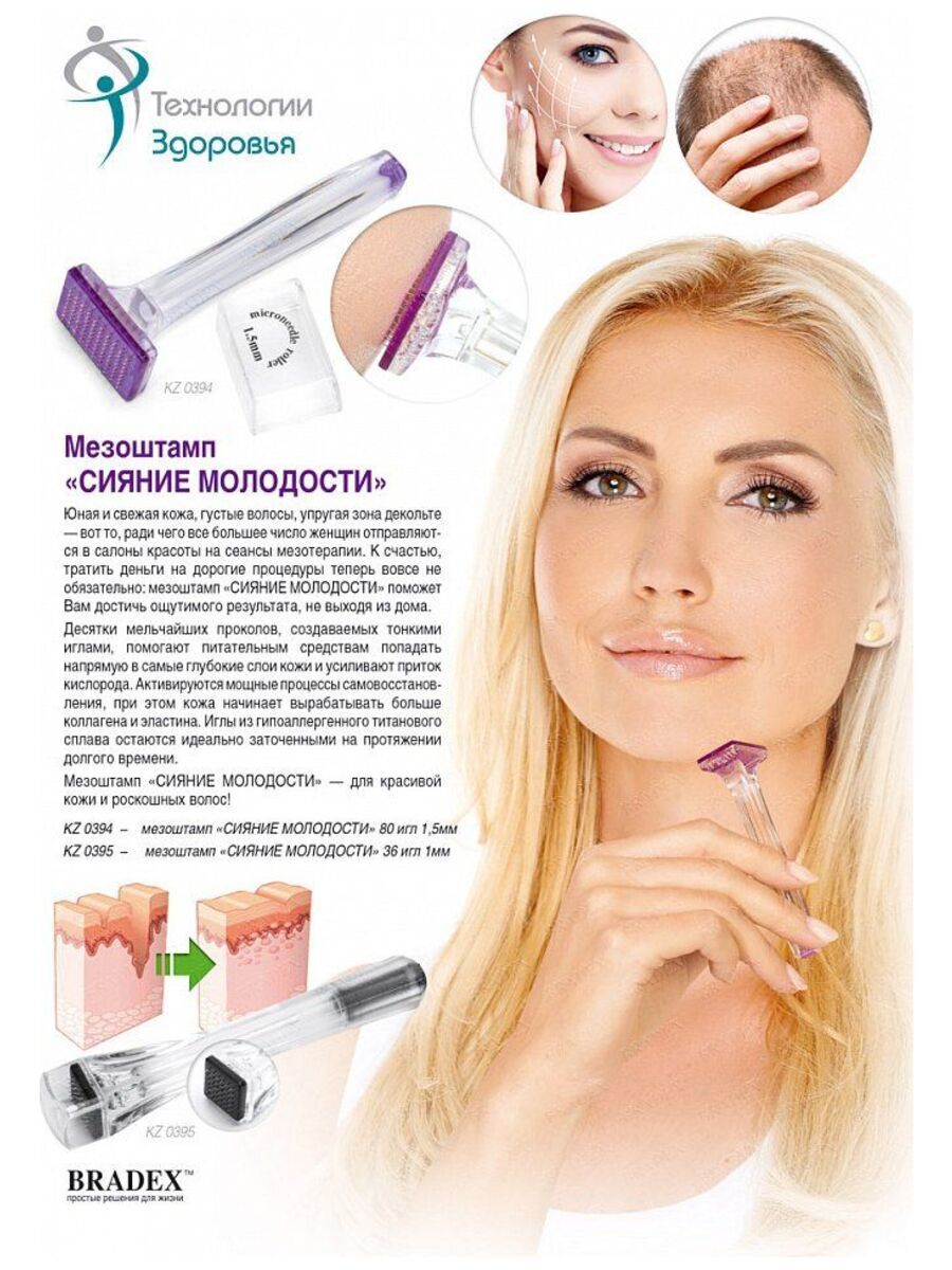 В последние годы все больше и больше салонов красоты практикуют мезотерапию, ведь с ее помощью можно эффективно бороться с возрастными изменениями кожи, растяжками и шрамами, а также с выпадением волос. Благодаря микроотверстиям Ваша кожа значительно увел