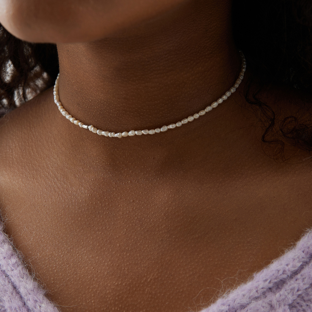 Длина колье: 30-35 см, ширина колье: 2 ммВставка-натуральный барочный жемчуг.Жемчуг барокко или барочный это разновидность обычного речного или морского жемчуга, отличающаяся неидеальными, неровными формами жемчужин. Термин “Барокко”, от итальянского озна