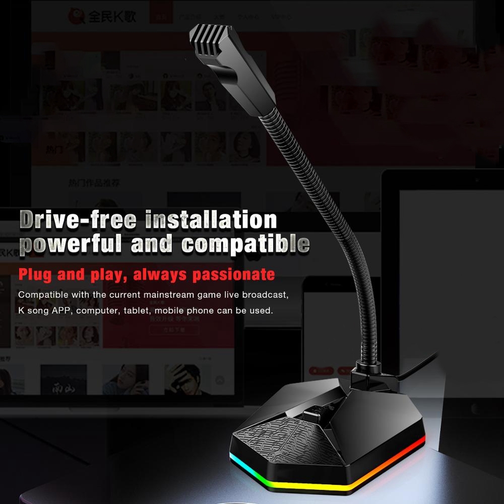 Микрофон для конференций Емкостный USB-микрофон с RGB-подсветкой на 360 градусов для конференц-связи с голосовым чатом, черный