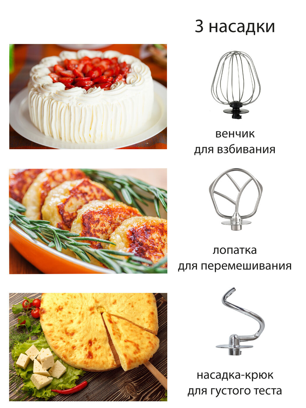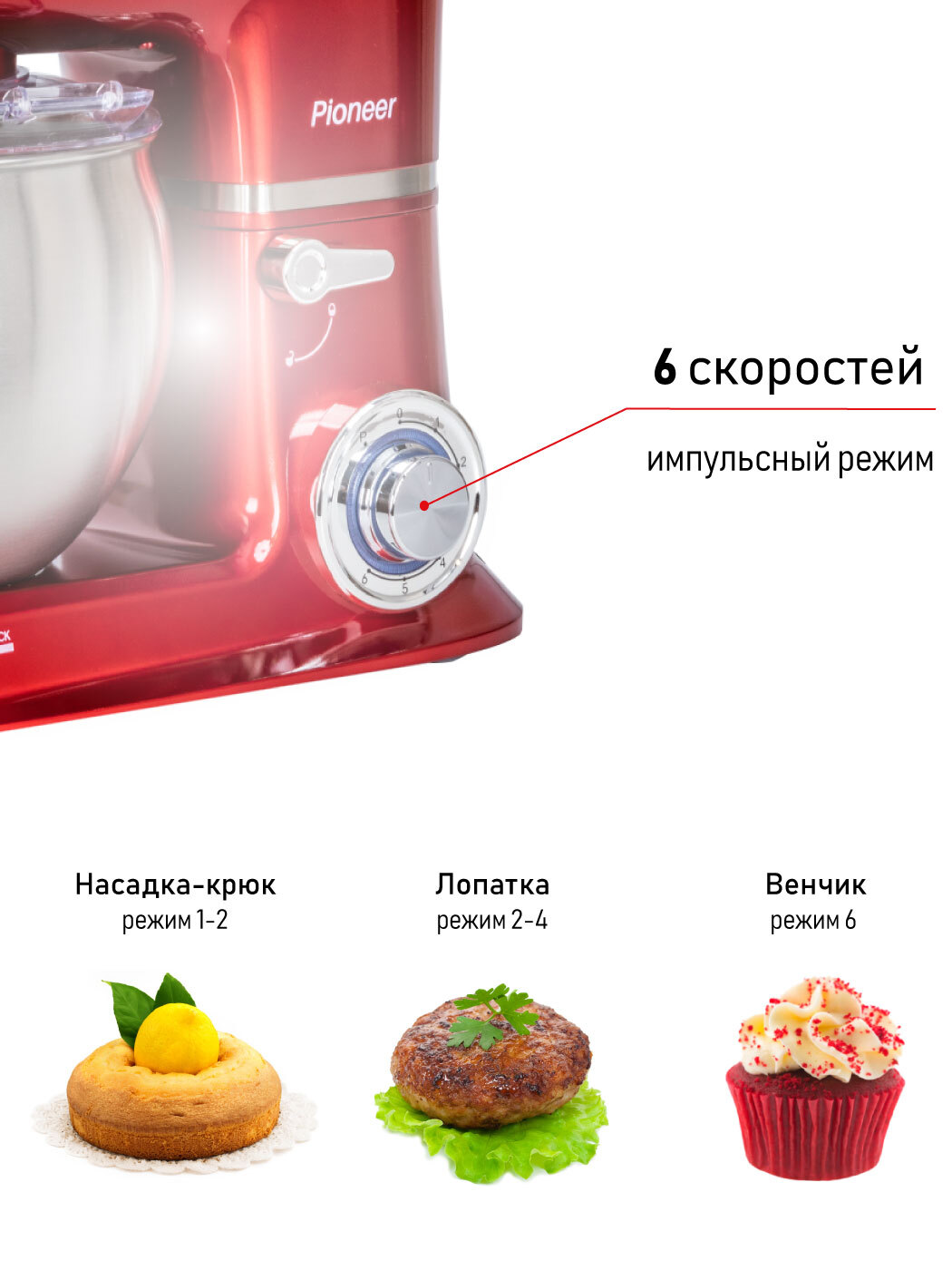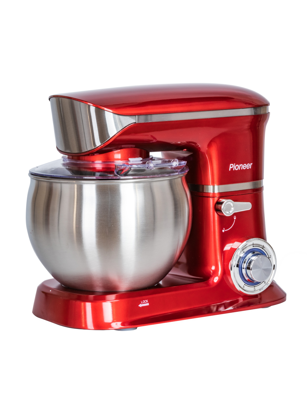 Планетарный миксер Pioneer MX327 мощностью 1200 Вт со съемной чашей объемом 6 л, выполненной из нержавеющей стали, 3 насадками и 6 скоростями представляет собой современный стационарный прибор для замеса дрожжевого и бездрожжевого теста различной вязкости