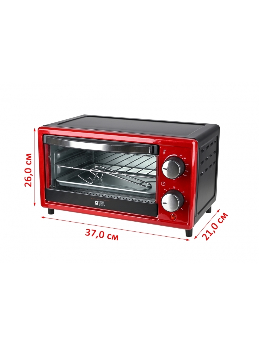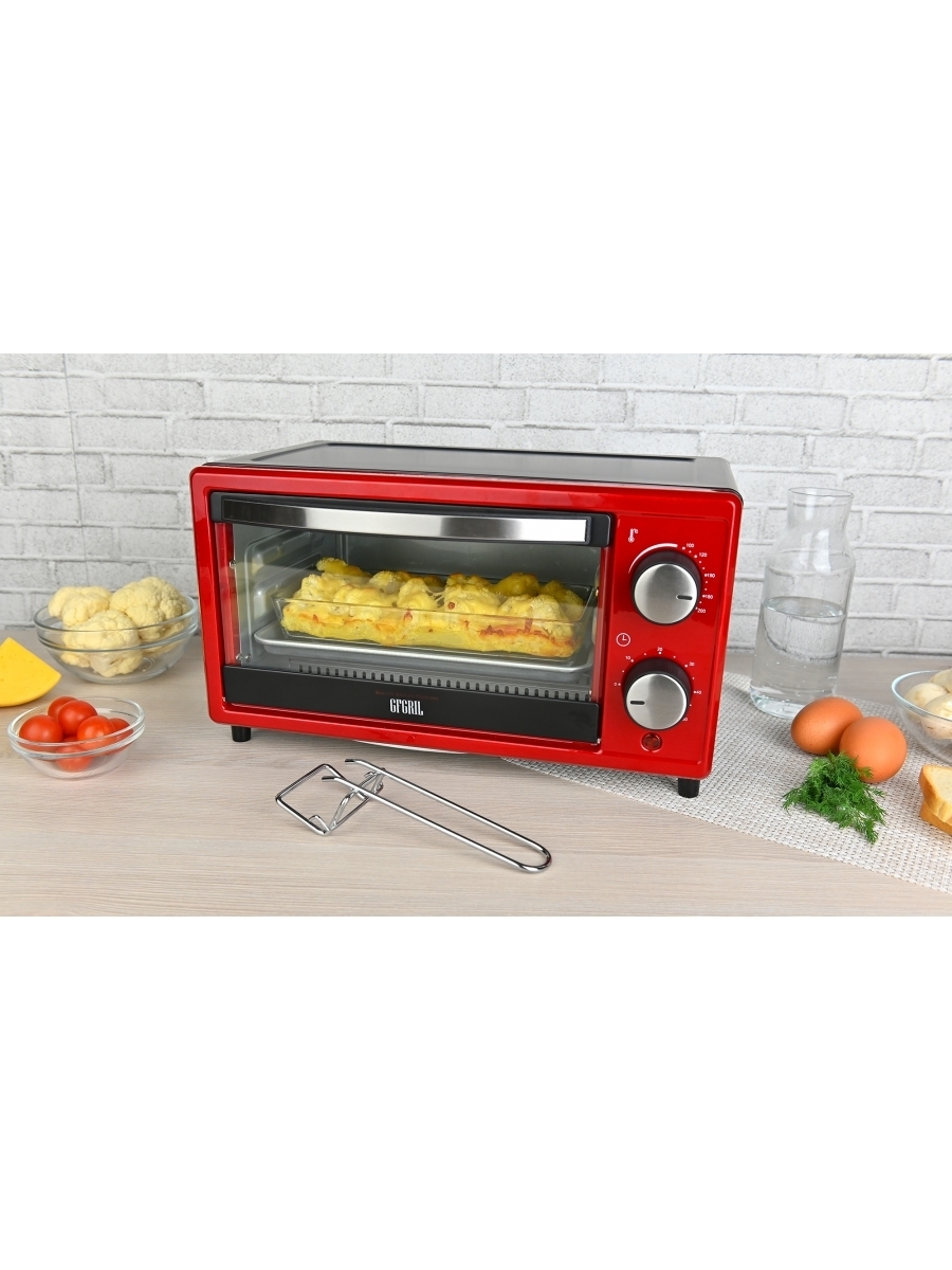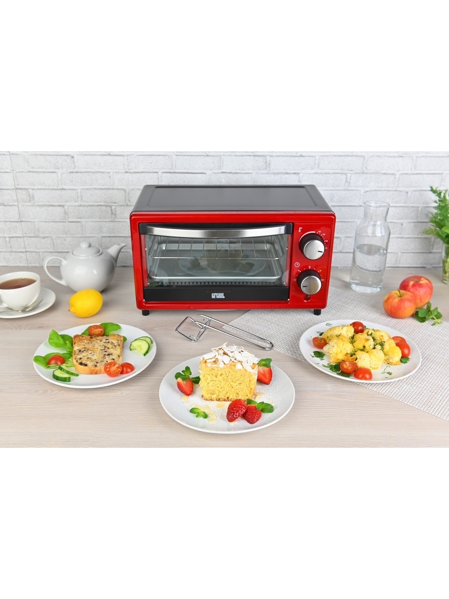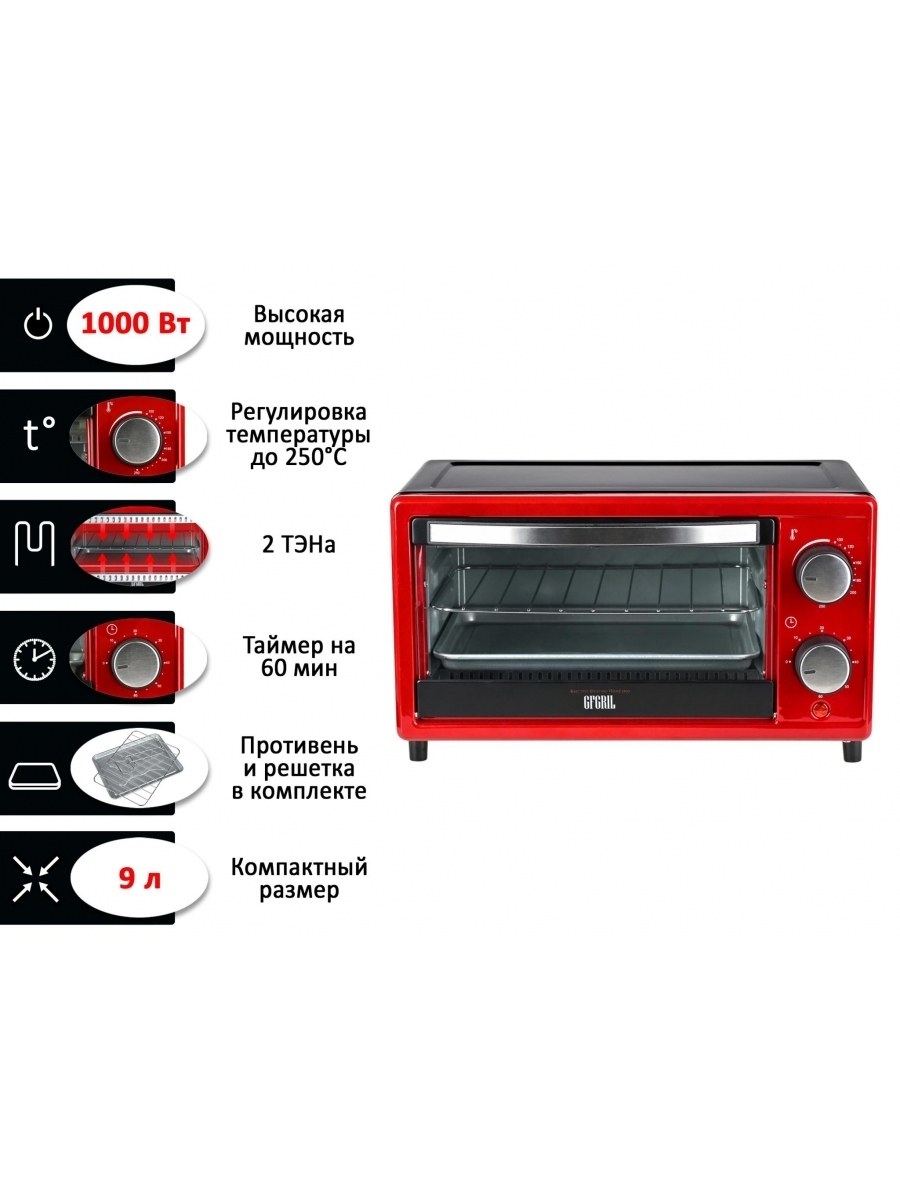 Комплектация:Мини-печь, противень, зажим, решетка, инструкцияОписание:Мини-печь GFO-09 незаменима для всех, кто заботится о правильном и здоровом питании. Объем всего 9 литров, но несмотря на компактность мини-печи, ее возможности и высокая мощность 1000