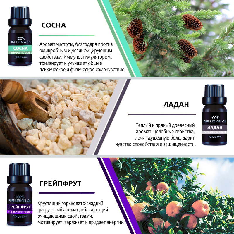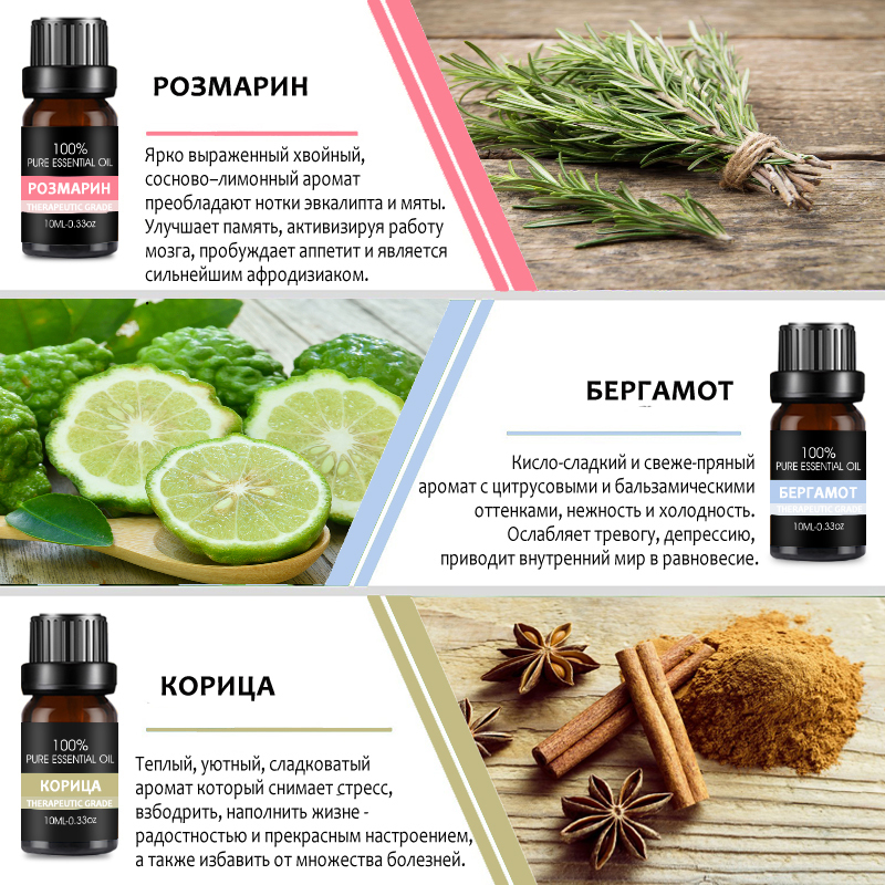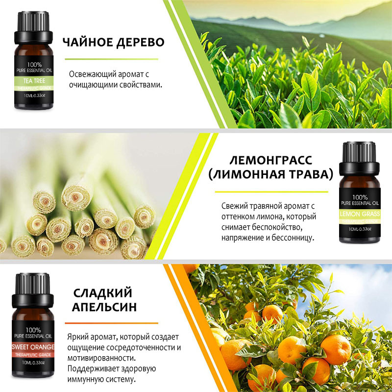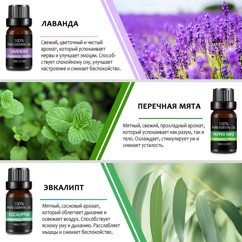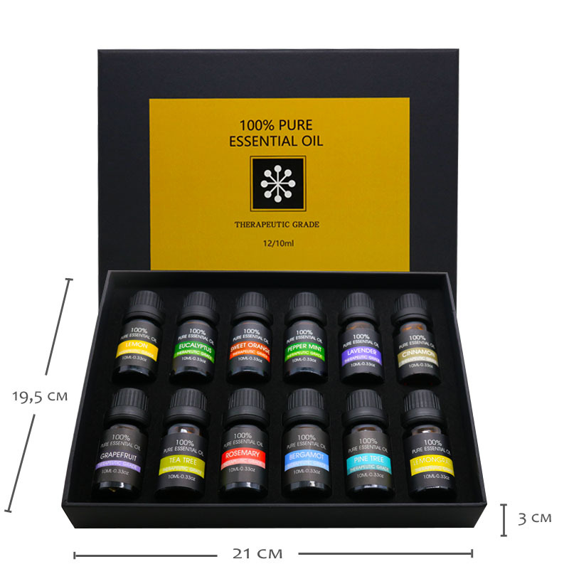 Набор 100% натуральных эфирных масел для наружного применения.Включает в себя 12 отдельных флаконов по 10 мл эфирных масел:1. Масло лемонграссаСредство от комаров, устраняющее мышечную боль и подтягивающее кожу2. Эвкалиптовое маслоСглаживание настроении и