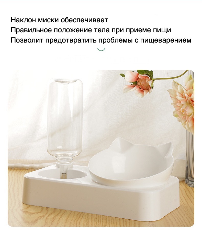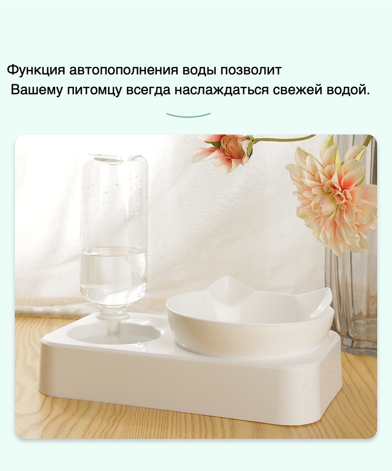 Миска с автопоилкой подойдёт для кошек и мелких пород собак. Функция автопополнения воды позволит Вашему питомцу всегда наслаждаться свежей водой. С помощью такой поилки доступ к воде будет в любое время. Миска для кошек и собак мелких пород с углом накло