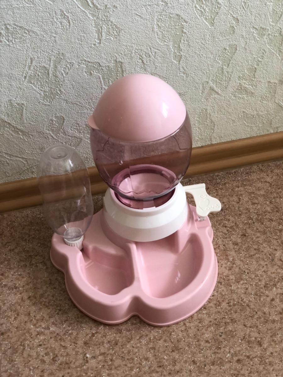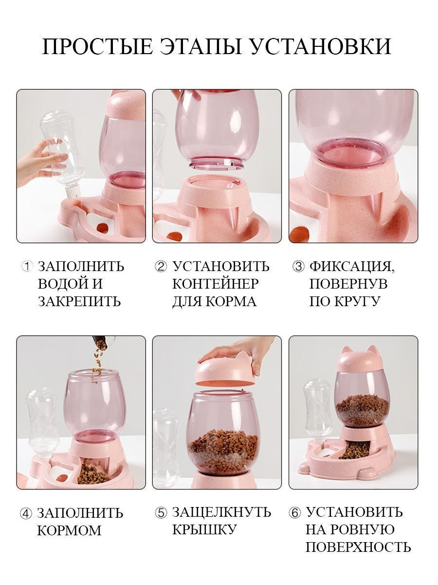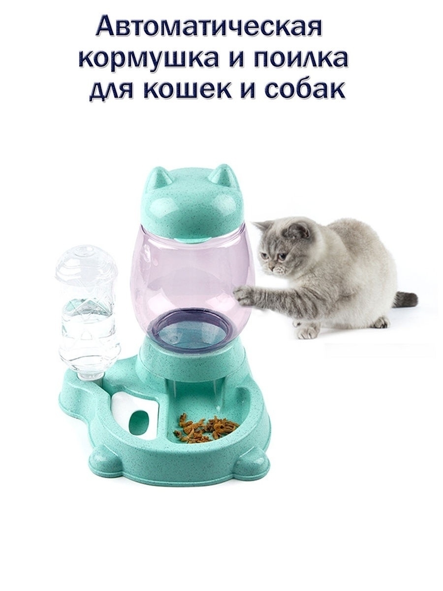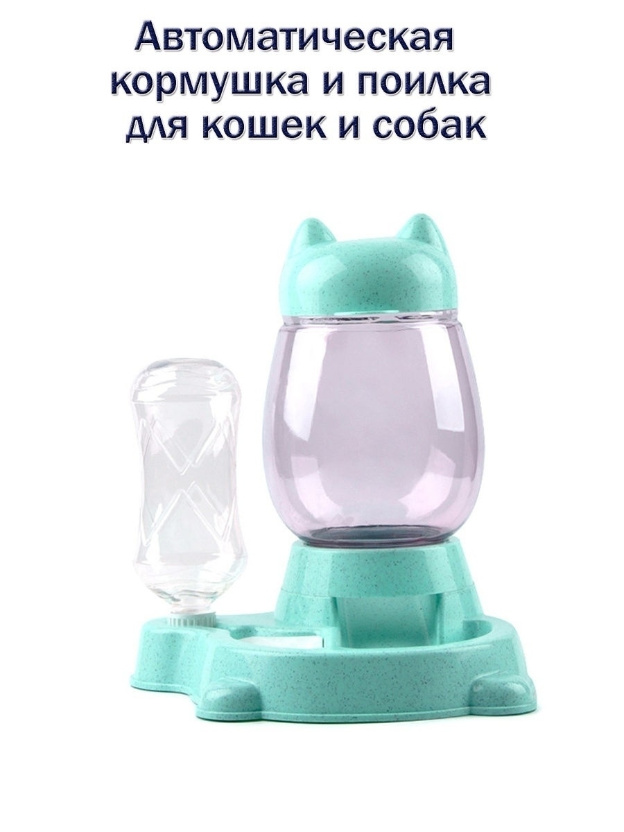 Аксессуары для кормления: Автоматическая кормушка для собак и кошек. 2.2L объем контейнера под корм. Бутылочка для воды имеет объём 600 мл. Состоит из бутылки с ограничителем, миска и поилка для животных, контейнера для корма и крышки. Изготовлена из проч
