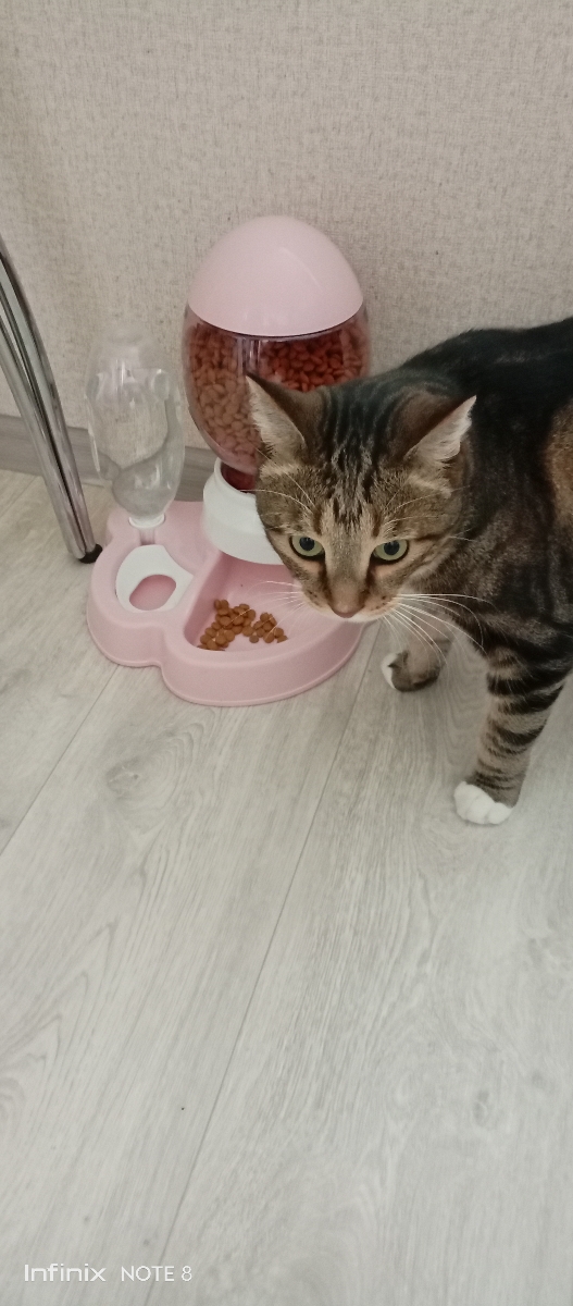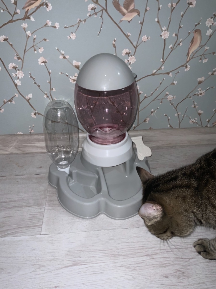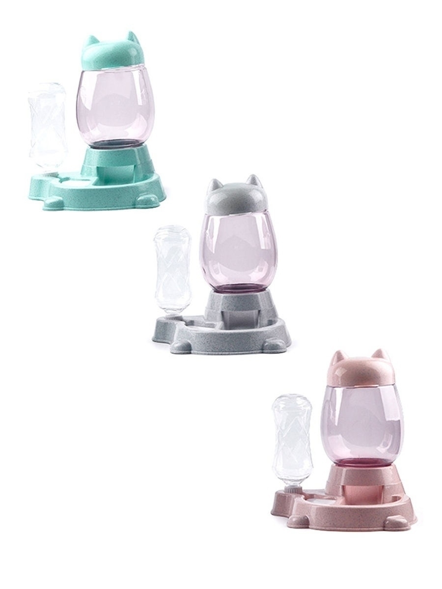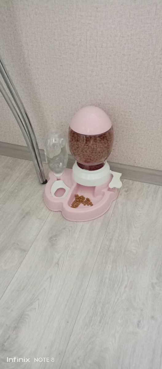 Аксессуары для кормления: Автоматическая кормушка для собак и кошек. 2.2L объем контейнера под корм. Бутылочка для воды имеет объём 600 мл. Состоит из бутылки с ограничителем, миска и поилка для животных, контейнера для корма и крышки. Изготовлена из проч