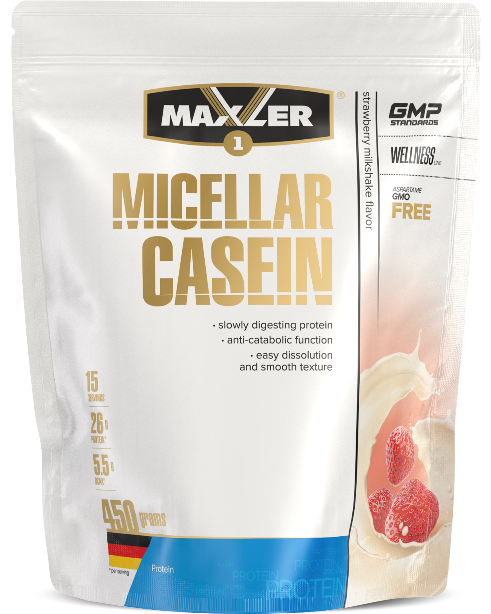 Maxler Micellar Casein:Медленно переваривающийся протеинАнтикатаболический эффектОтличная смешиваемость и нежная текстураМногие спортсмены стремятся ускорить восстановление мышц и предотвратить их катаболизм во время сна. Именно в этих целях многие приним