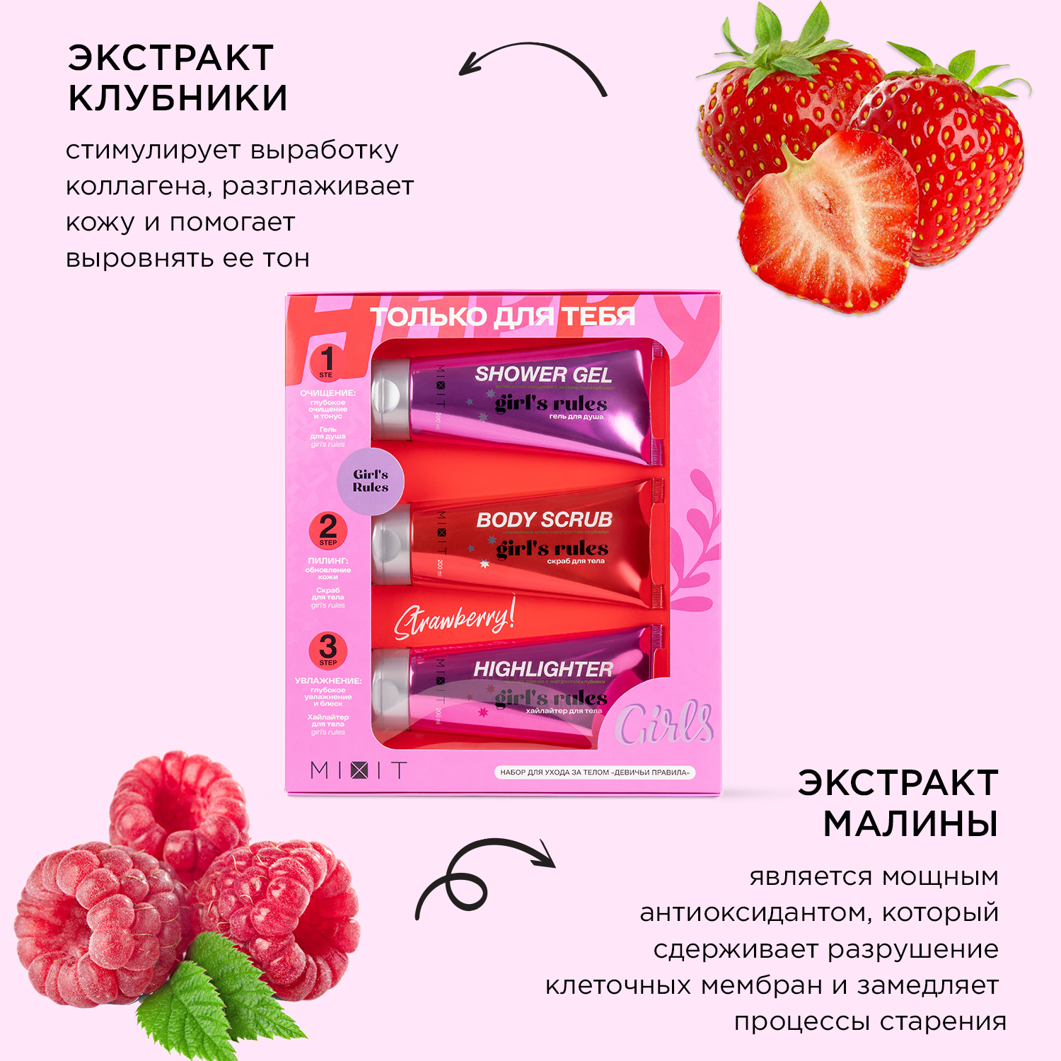Какая девушка не любит играть по своим правилам?! Именно поэтому мы приготовили секретное оружие - яркий набор по уходу за кожей, который включает в себя гель для душа, скраб для тела и хайлайтер с экстрактом клубники. Сегодня ты выбираешь, по каким именн