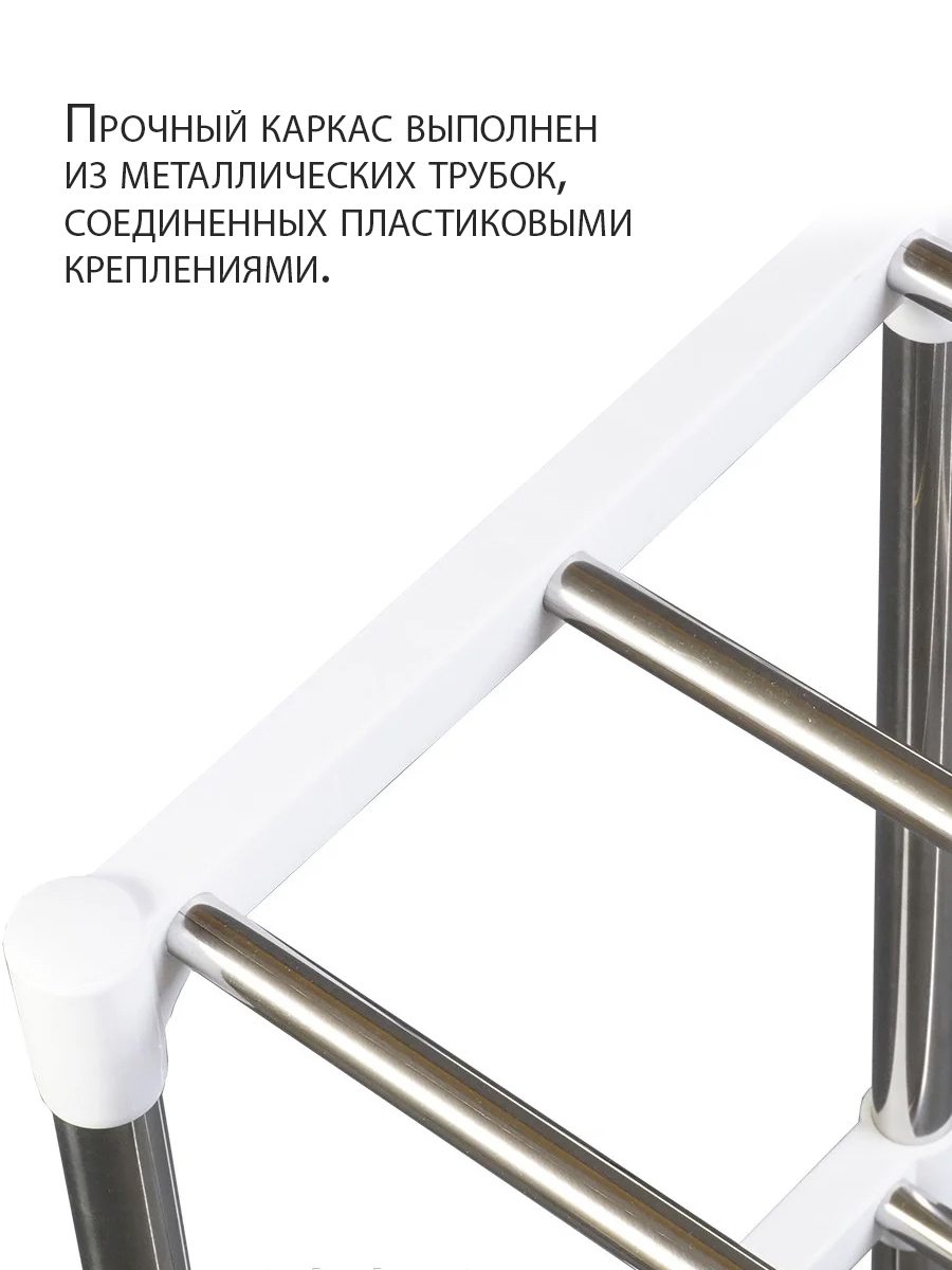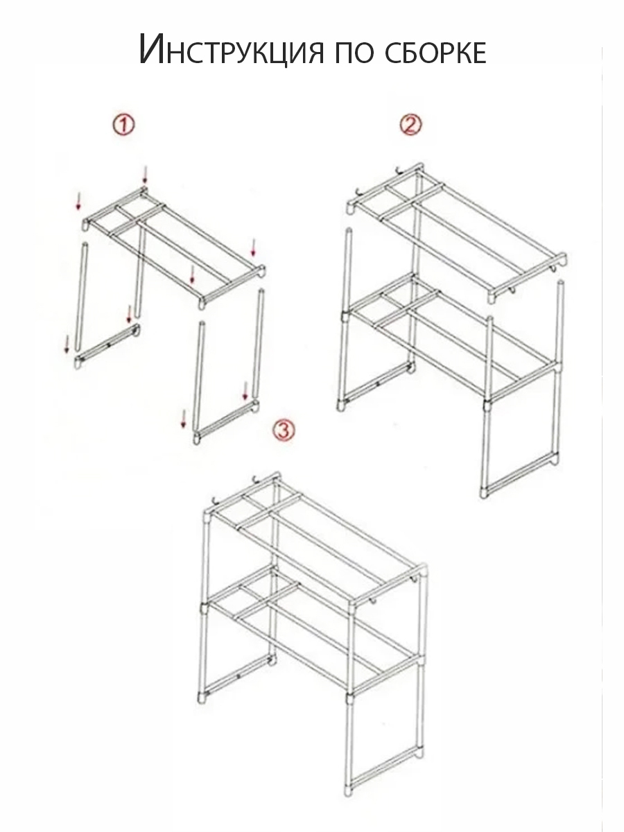 Полка для микроволновки или другой бытовой техники. Каркас выполнен из металлических трубок, соединенных пластиковыми креплениями. Две широкие полки позволят организовать пространство и удобно разместить над СВЧ печью множество кухонных принадлежностей.Ши