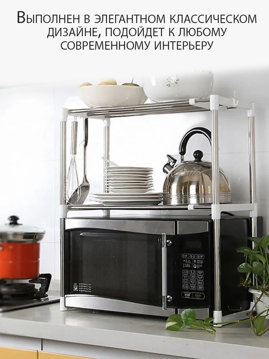 ЦветМногофункциональная телескопическая подставка-полка для СВЧ печи / Полка для микроволновки / Полка для кухни, ванной комнаты, прихожей / Складная полка органайзер для мелочей / Интерьерная полка для хранения на кухне / Стеллаж над СВЧ / Товары для дома