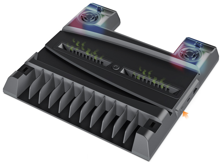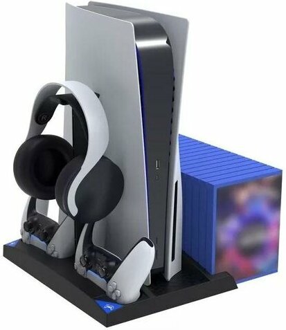 Мультифункциональный зарядный стенд для игровой консоли PlayStation 5, это уникальный и очень полезный аксессуар, способный заменить сразу несколько очень важных дополнений для PS5. Стенд имеет прекрасно проработанный и симпатичный дизайн и одновременно в