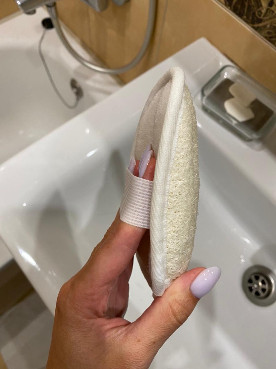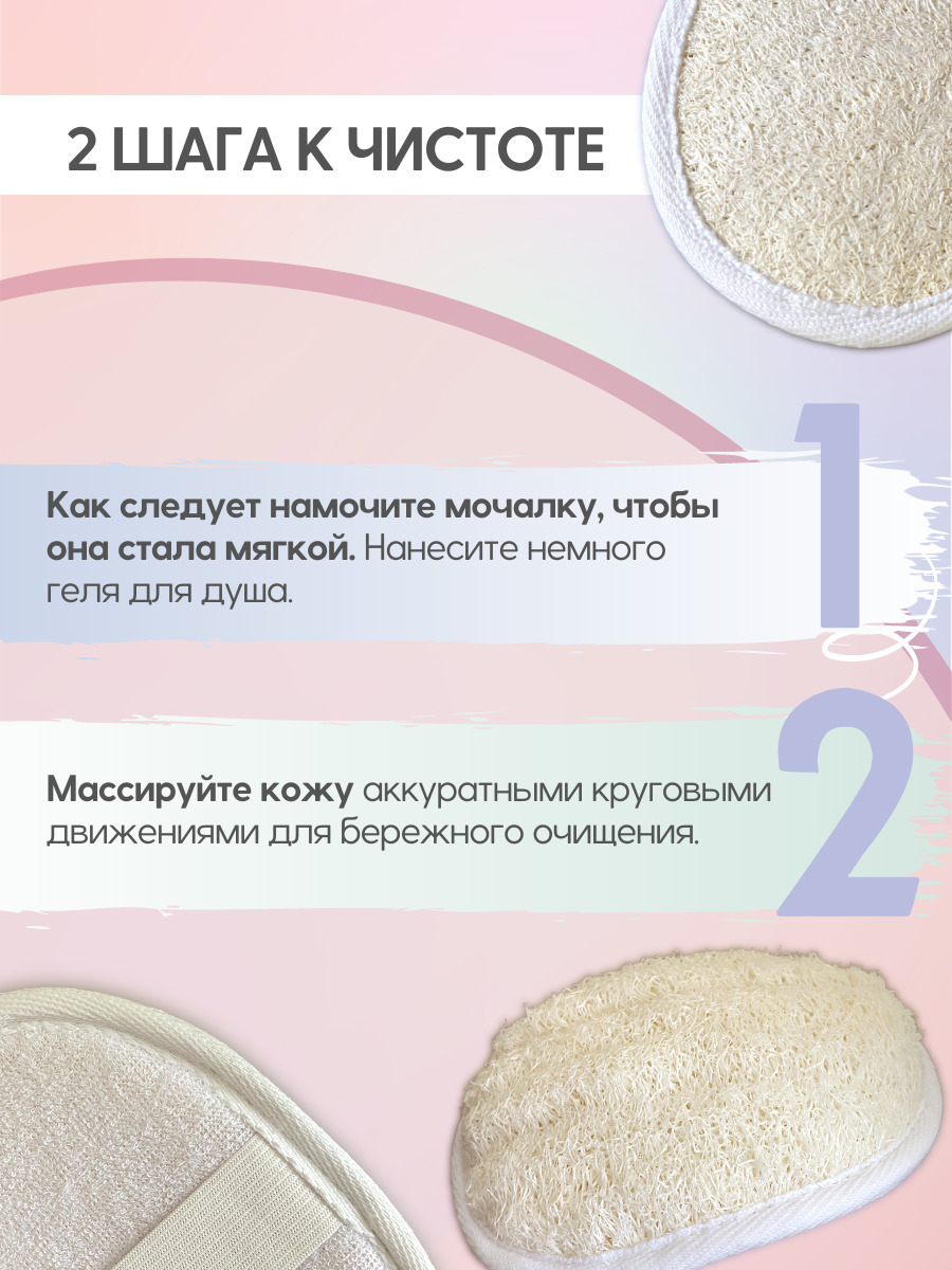 Способ применения:Массируйте кожу по массажным линиямКомплектация:Мочалка из люфыОписание:Мочалка из люфы изготовлена из натуральных волокон природного происхождения. Она имеет удобную овальную форму с петлей для подвешивания и резинкой сзади, чтобы мочал