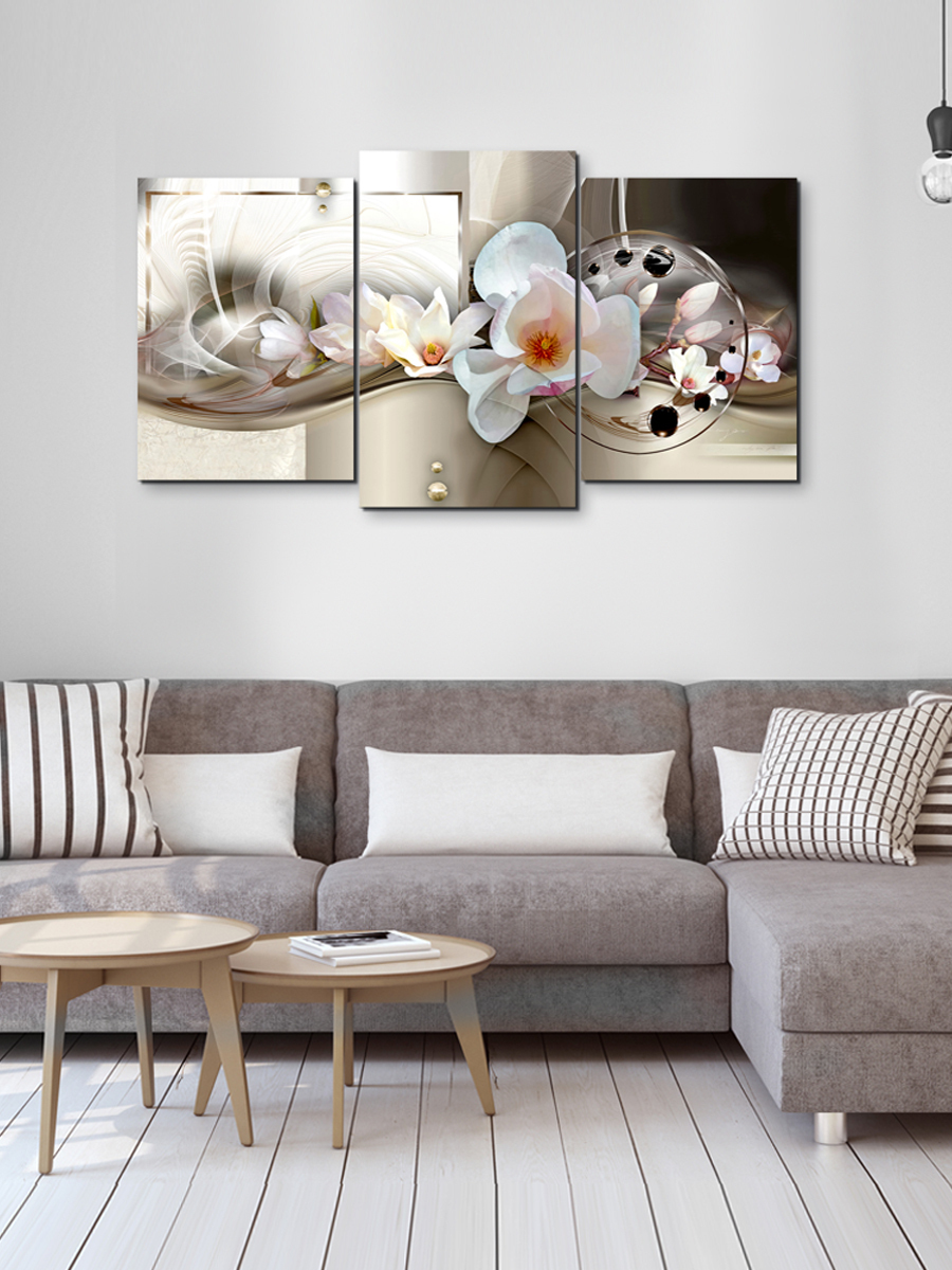Модульная картина "Экспозиция в цветах" из трех частей. День Рождения или новосел, Новый год или 8 Марта – это лишь несколько поводов для серьезного подхода к выбору подарка. Чтобы порадовать получателя своим презентом, остановите свой выбор на том, чему
