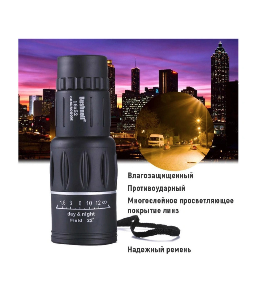 Надёжный монокуляр с двойной фокусировкой для решения различного рода задач: повседневного использования, концертов, матчей по футболу, просмотра спектаклей в театре, походов на природу, туризма, охоты, рыбалки и т.д.Влагозащищенный прорезиненный корпус п