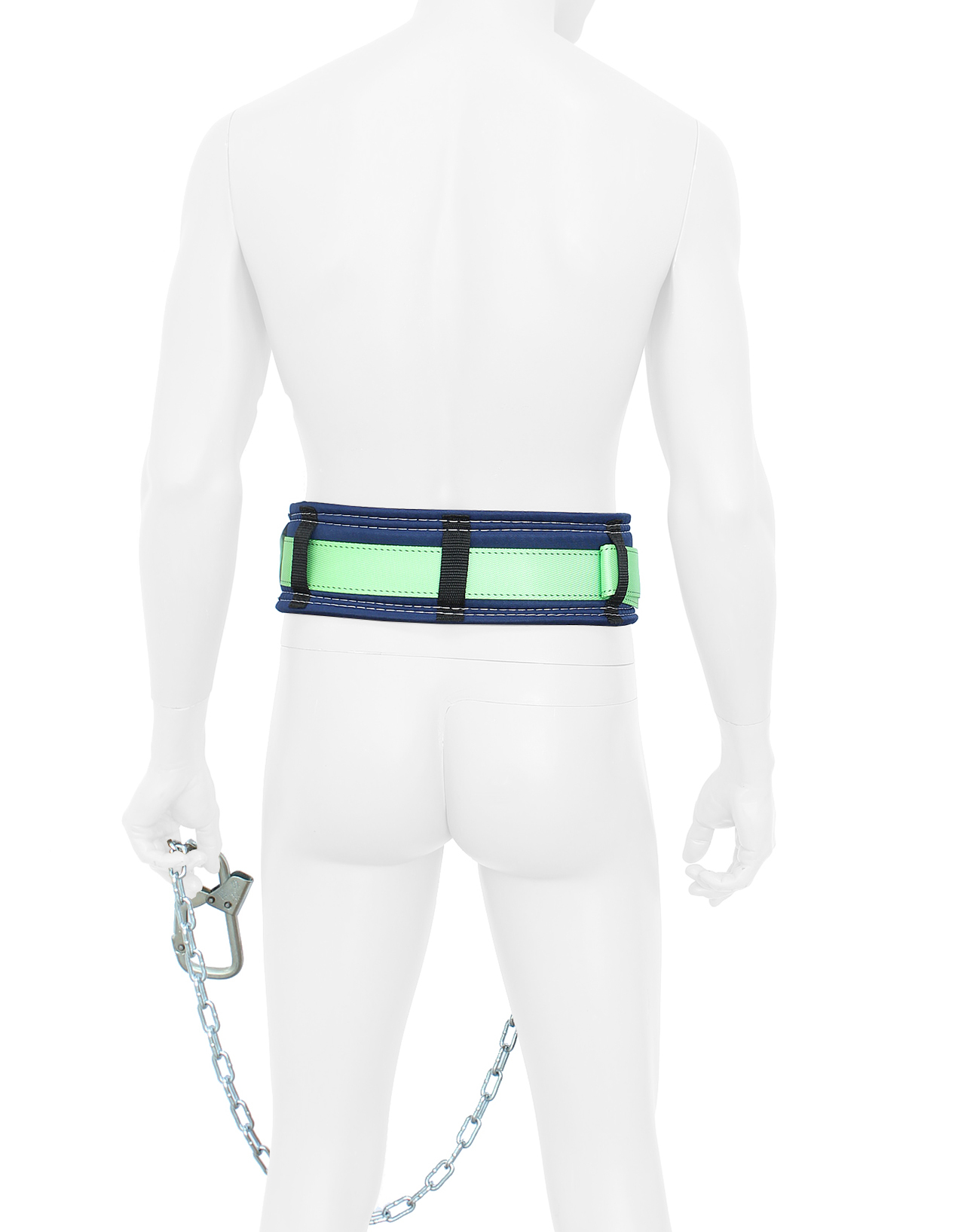 Удерживающая привязь УП 1 Г (Пояс предохранительный ПП-1Г) включает в себя ремень с пряжкой (позволяет подгонять пояс по фигуре человека), подкладку под ремень (кушак), элементы крепления – два металлические D-кольца на ремне привязи, строп из металлическ