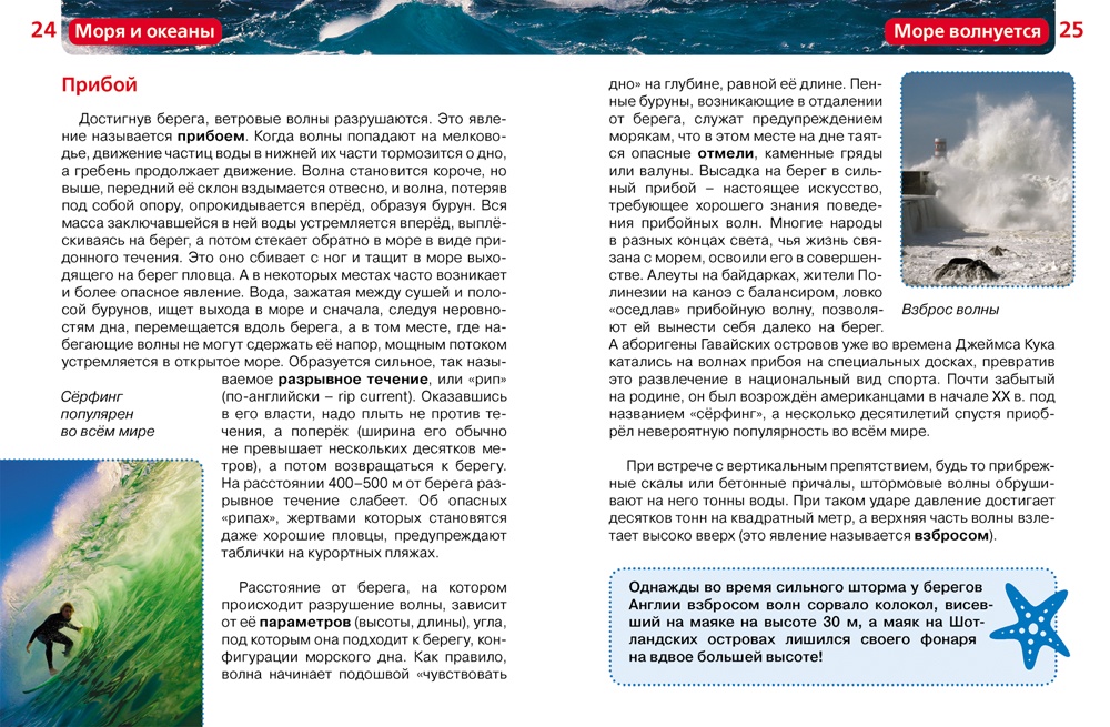 Иллюстрированная энциклопедия для детей начального и среднего школьного возраста доступно и увлекательно расскажет о разнообразии океанов и морей, о свойствах морской воды, важной роли ветров и течений, строении морского дна и островов, их богатом животно