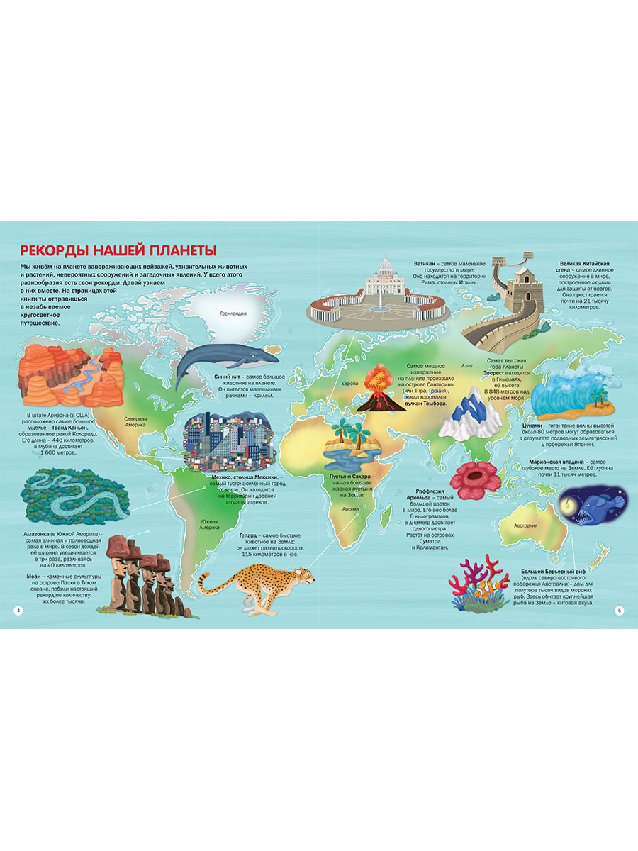 Уважаемые родители! Поскорее откройте вместе с вашим ребёнком этот большой красочный атлас, чтобы побывать во всех уголках нашего необъятного мира. Сначала найдите место, в котором вы живёте, расскажите ребёнку про него. Затем отправляйтесь в необычное пу