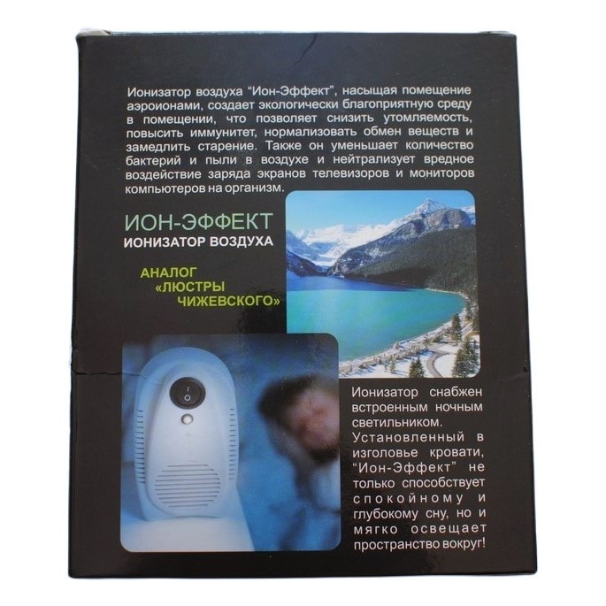 Комплектация:Ионизатор воздуха «Ион-Эффект» — 1 шт.Инструкция — 1 шт.Коробка — 1 шт.Описание:Ионизатор воздуха «ИОН-ЭФФЕКТ» предназначен для создания экологически благоприятной воздушной среды в жилых и офисных помещениях. «ИОН-ЭФФЕКТ» обеспечивает оптима